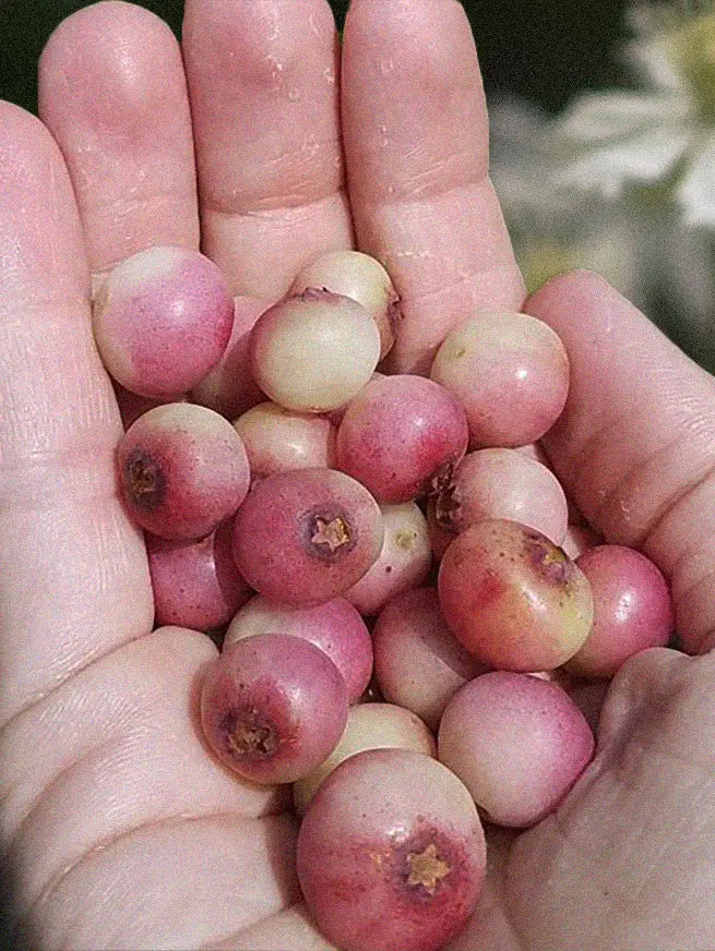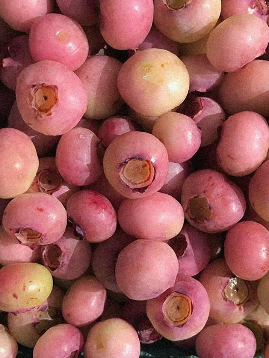 Amerikanskt blåbär 'Pink Lemonade', Vaccinium corymbosum 'Pink Lemonade' är en kompaktväxande, rikbärande sort. Bären har en ovanlig färg som skiftar från ljusrosa till en mörkare nyans. Inuti har den ett vitt fruktkött. Får mängder med stora bär som mognar i mitten av augusti/september. Fantastiskt god smak och arom. Blåbärsbuskar får en otroligt vacker gyllengul höstfärg som lyser upp den gråaste höst. Blåbär är en surjordsväxt som planteras i humusrik jord med jämn fuktighet.