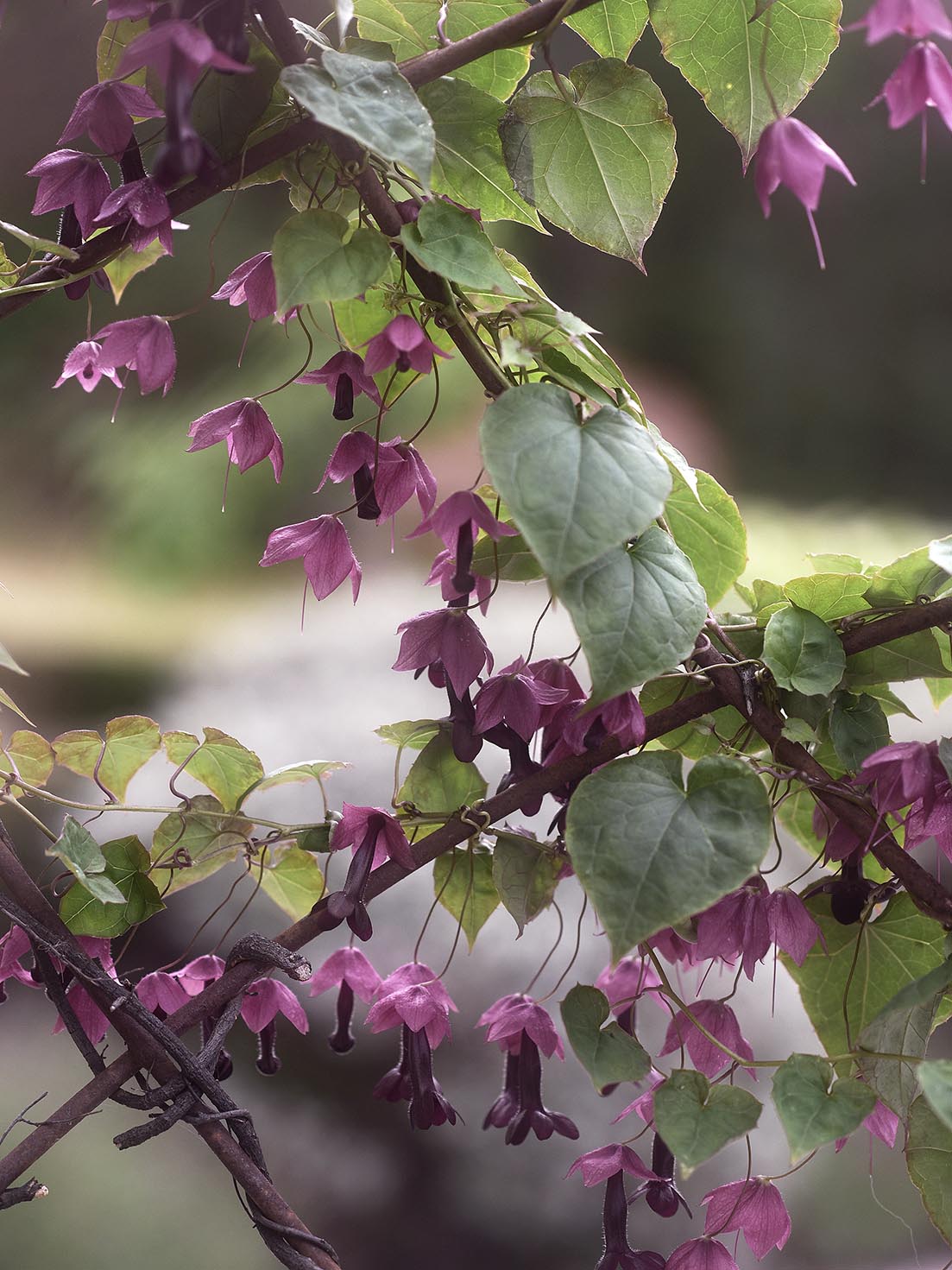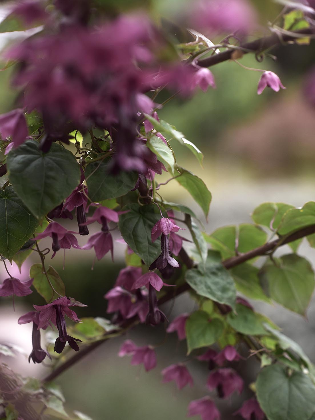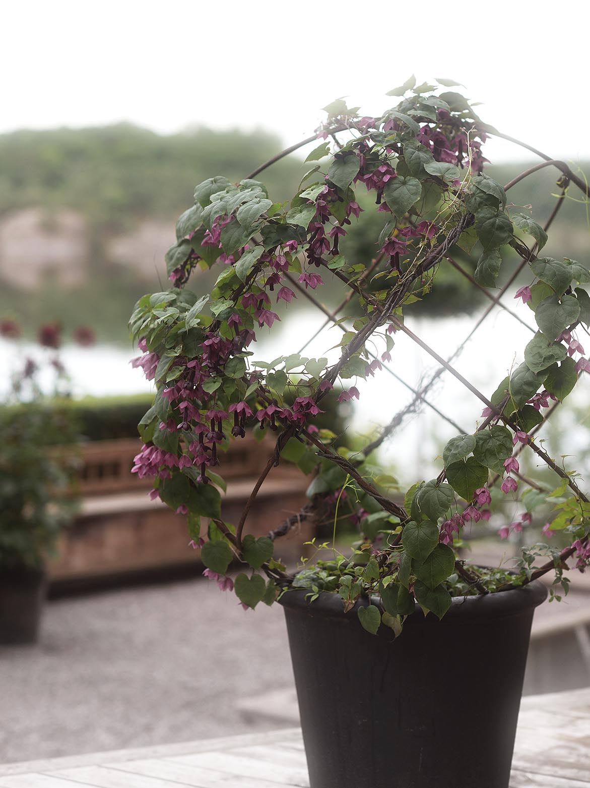 Törnrosa Kjortel ’Purple Bells’ är en exotisk klättrare med blommor som ser ut som hängande klockor i rosa och lila. Får hjärtformade löv. Bäst att odlas utomhus i krukor, hängande korgar eller klättra på en spaljé. Plocka hela rankor som snitt till vasen.