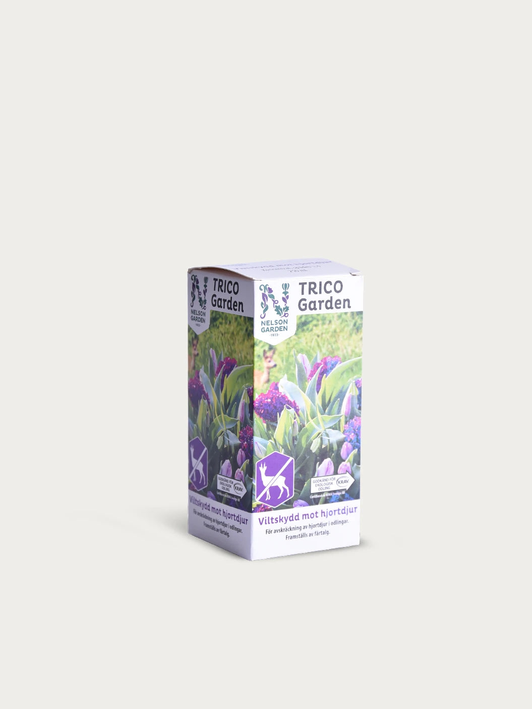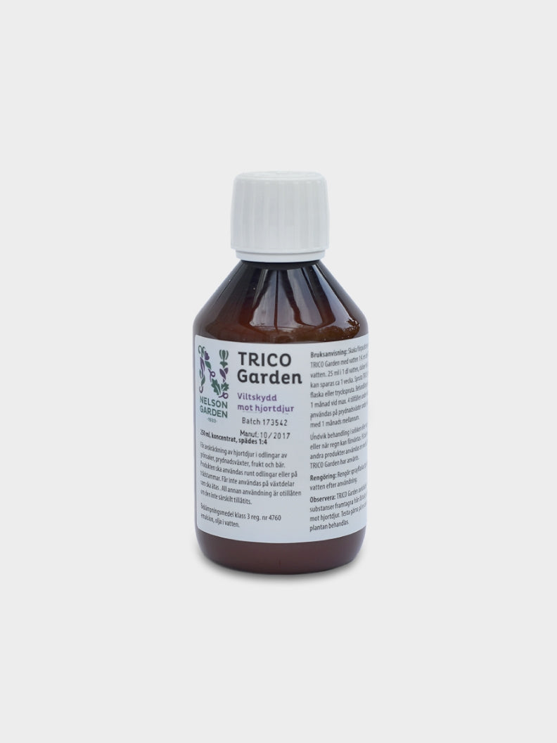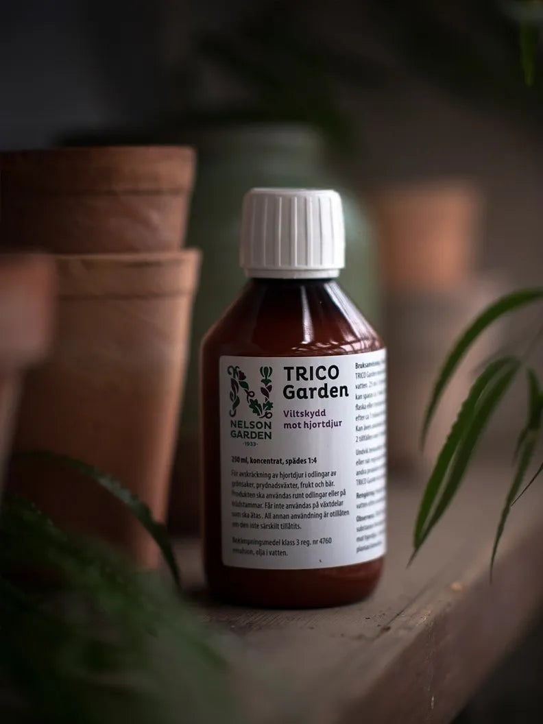 Trico Gardens doft och smak avskräcker effektivt vilda djur, t ex rådjur, hjort och älg från planteringar av prydnadsväxter. Trico Garden ger ett långvarigt skydd och kan användas året runt. Använd gärna vår tryckspruta när du behandlar dina växter.