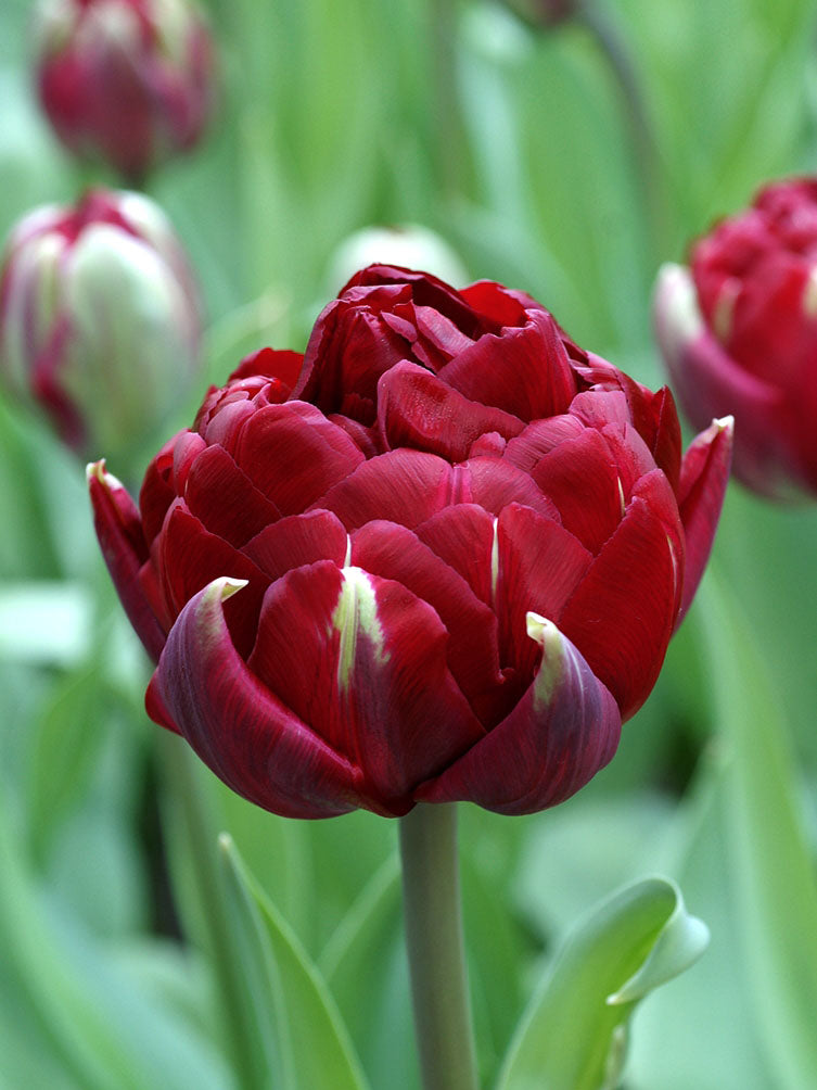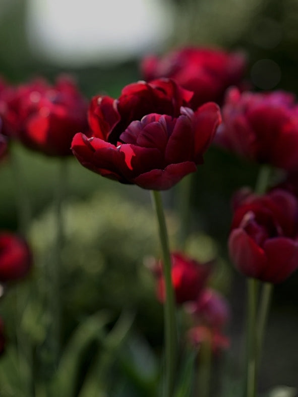 ”En av mina favoritlökar är tulpanen ’Antraciet’. Den blommar i fluffigt vinrött under pagodkornellen. Den liknar en fylld pion och får små sidoknoppar på varje stjälk. Underbar!” / Victoria Skoglund