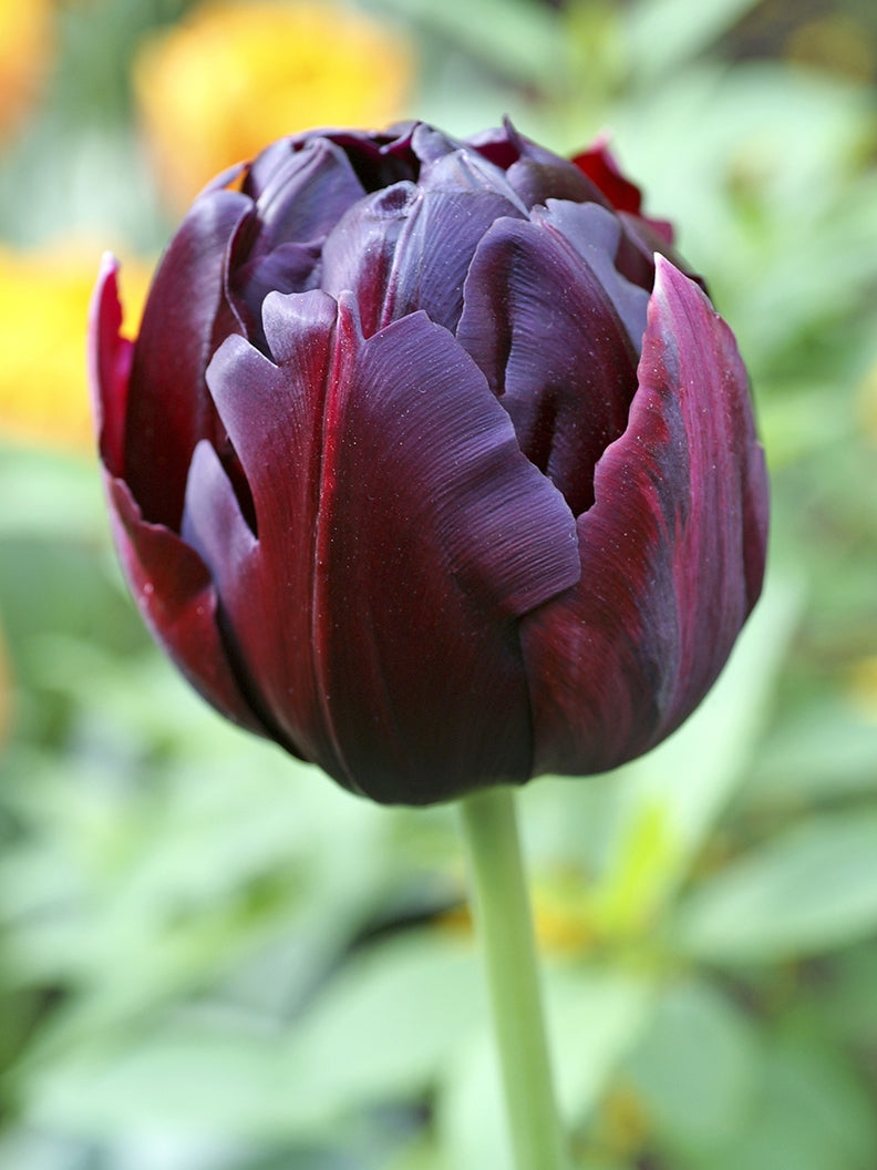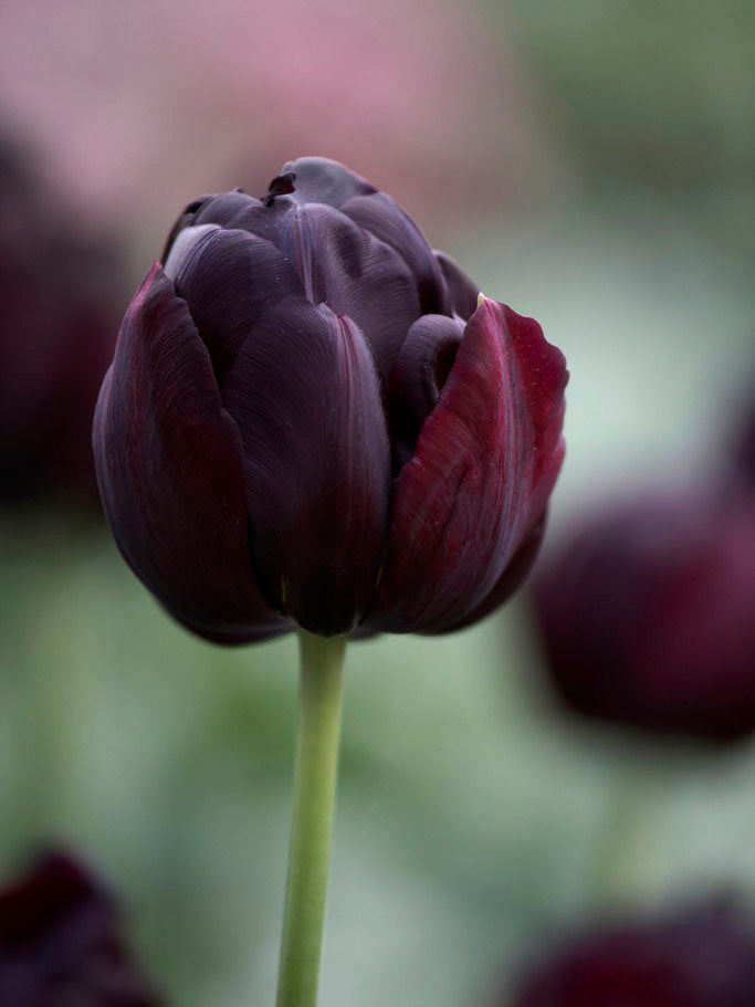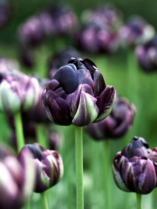 En fylld tulpan i dramatiskt sammetslena skiftningar från kastanjebrunt till svart. Blommar mot slutet av maj. Den blir cirka 40-45 cm hög och blommar i maj-juni. Tillhör den Sena Fylldblommiga Gruppen. Kombinera med vita liljeblommande tulpaner och vår favorittulpan ‘Light and Dreamy’.