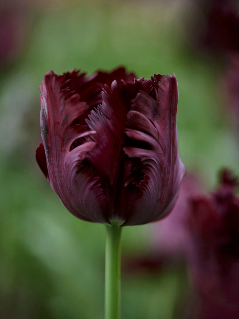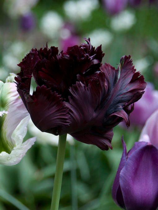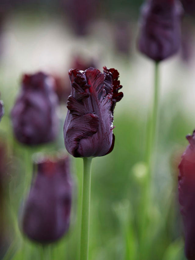 Tulpan 'Black Parrot' är en alldeles underbar, mörk purpurfärgad tulpan ur den karaktäristiska Papegoj-Gruppen med flikiga kanter och ett närmast konstnärligt utseende. Den blir cirka 50 cm hög.