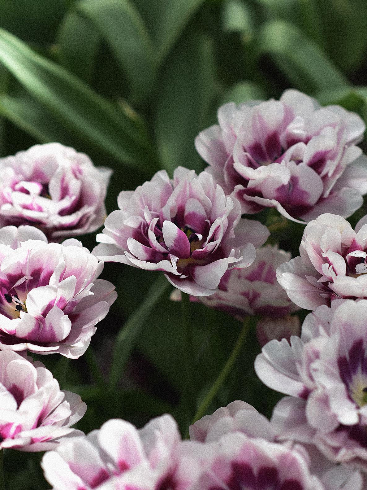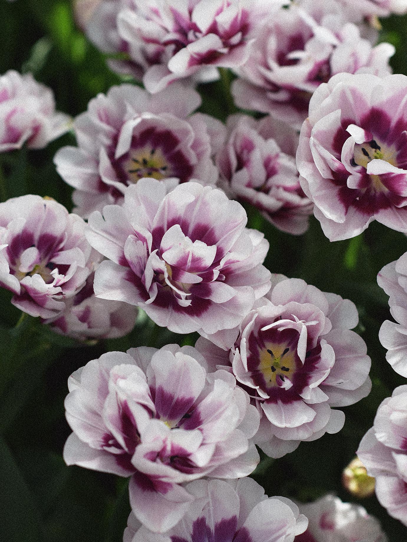 Tulipa gesneriana (Sena Fylldblommiga Gruppen) 'Late Wyndham' (’Pistache’) är en spektakulär tulpan med stora fyllda blommor. Blomman är vit med vinröd botten och ljusare strimmor i kronbladen. Den doftar svagt av pistagenötter.