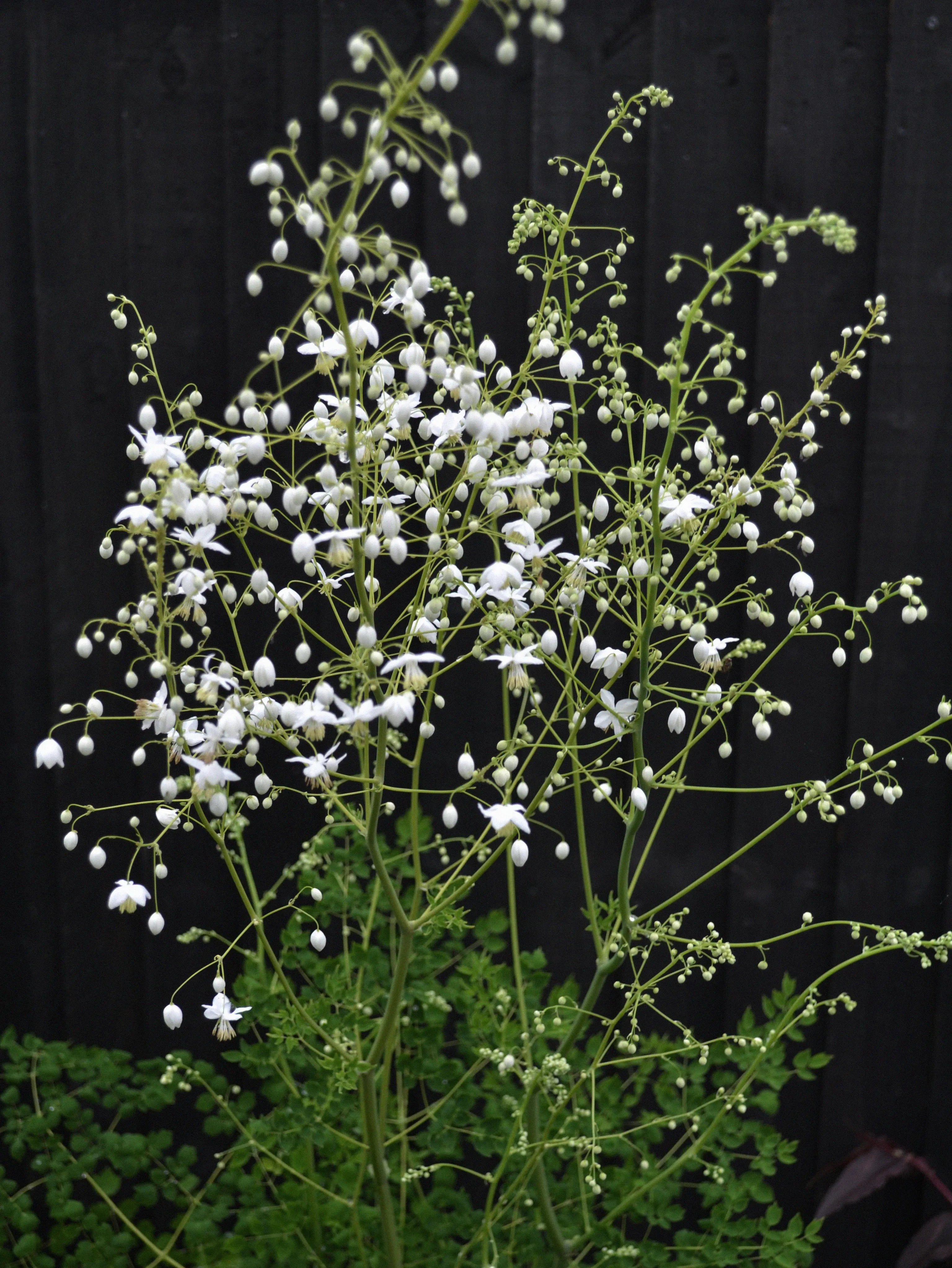 Violruta 'Splendide White', Thalictrum delavayi 'Splendide White' är ett häftigt tillskott i rabatter med sin magnefika höjd och graciösa vita blommor och skira blad. Trivs i sol till halvskugga i väldränerad, lätt fuktig jord. Kan behöva ett naturligt stöd av andra växter, buskar eller liknande för att hållas upprätt.