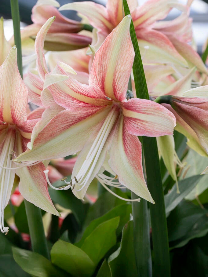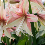 Amaryllislök 'Dance Valley' är en förtrollande sort som kännetecknas av sina mjukt rosa blommor med subtila vita strimmor och en diskret grön ton i blomstrupen. De stora, trumpetformade blommorna, upp till ca 20 cm i diameter, bärs upp av stadiga stjälkar som ofta utvecklar flera blommor samtidigt.