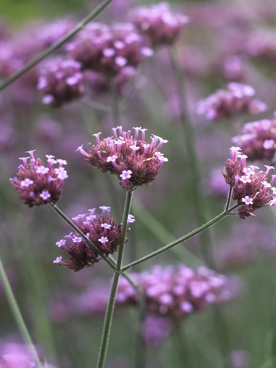 Denna jätteverbena, Verbena bonariensis är en kompakt och älskad sort med robusta stjälkar och ett överflöd av violetta blommor som nästan svävar över rabatterna. Perfekt snittblomma. Fantastisk fjärils- och biväxt. Rådjursresistent. Överlever ibland vintern på väldränerade platser.
