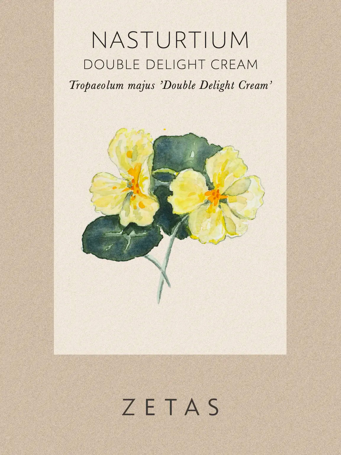 Dvärgkrasse 'Double Delight Cream' får blekgula halvdubbla och dubbla blommor vilket gör denna kompakta sort till en riktig njutning. Perfekt för köksträdgården, krukor och rabatter. Blommor och blad är ätbara med en pepprig smak. Lätt att odla. Attraherar blommor och bin.