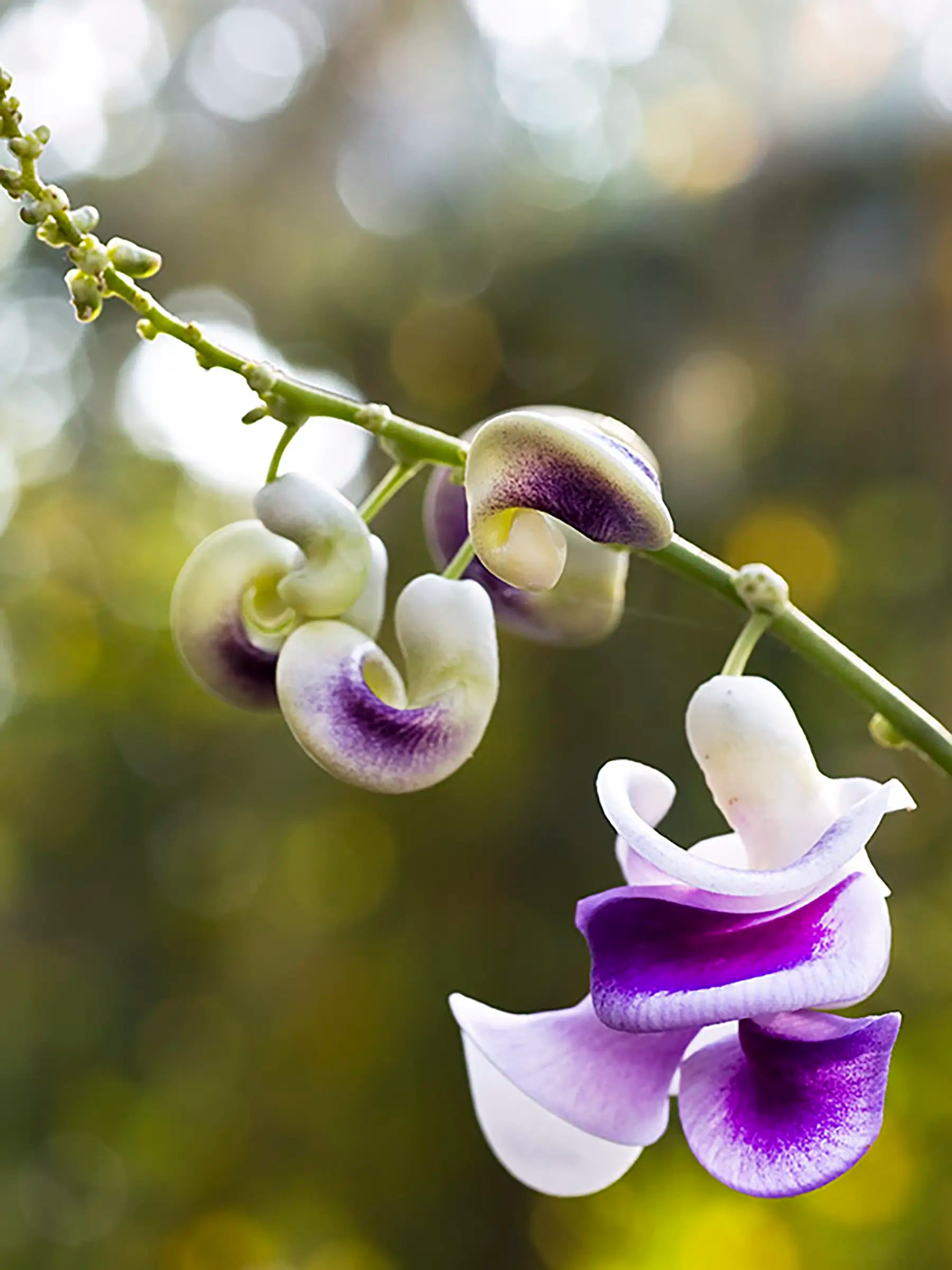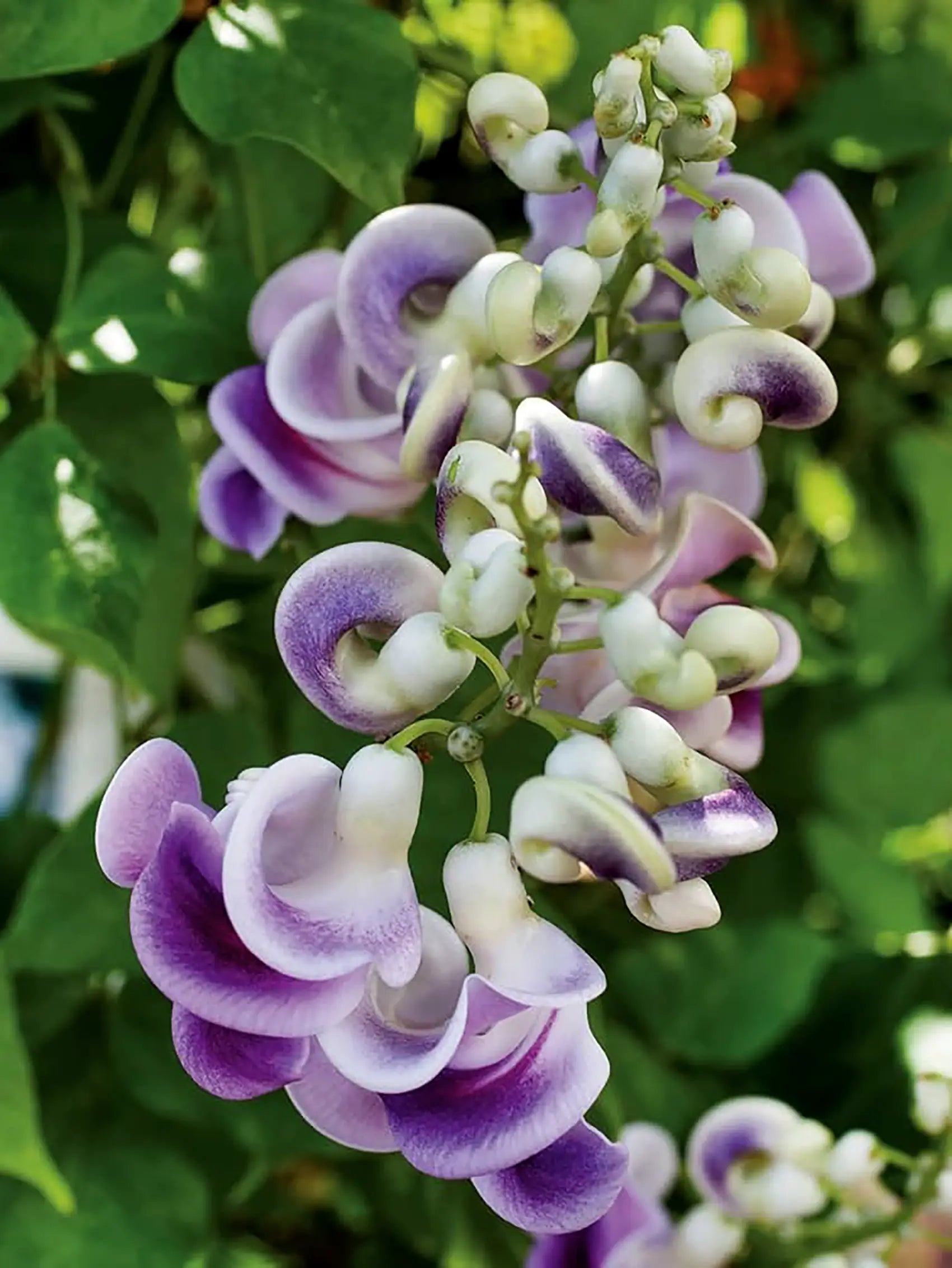 Snäckböna får fängslande snäckskal-formade blommor börjar vita och vecklas ut till lila-rosa. Denna snabbväxande klättrare ger ett attraktivt skydd för staket och murar i frostfria områden. Plantera där dess svaga hyacintliknande doft kan avnjutas.