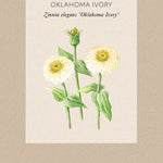 Zinnia ’Oklahoma Ivory’ är en zinnia som ger massor av dubbla och halvdubbla blommor i elfenbensvitt till krämigt gult. De små blommorna bärs på höga, starka stjälkar. Utmärkta snittblommor och håller länge i vas. Älskas av bin, fjärilar och humlor.