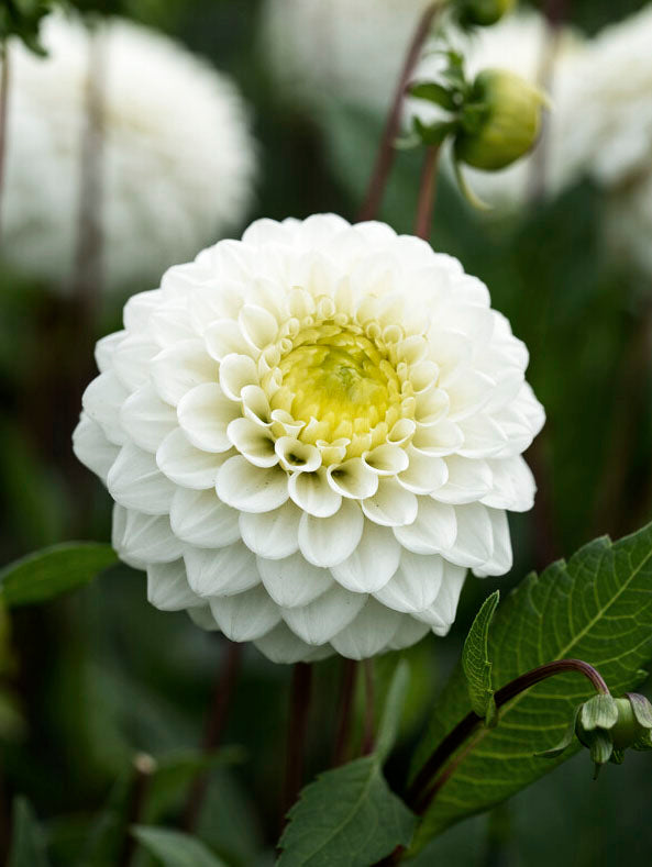 Dahlia ´Caro´ kan beskrivas som bröllopsdahlian då den med sin vita färg och gröna mitt är den perfekta blomman i sensommarens bröllopsbuketter. Men de små, vita bollformade blommorna lyser även upp i trädgården och är kanske som vackrast när det skymmer. De vita blommorna kontrasteras av den mörka stjälken som drar åt det bruna hållet.