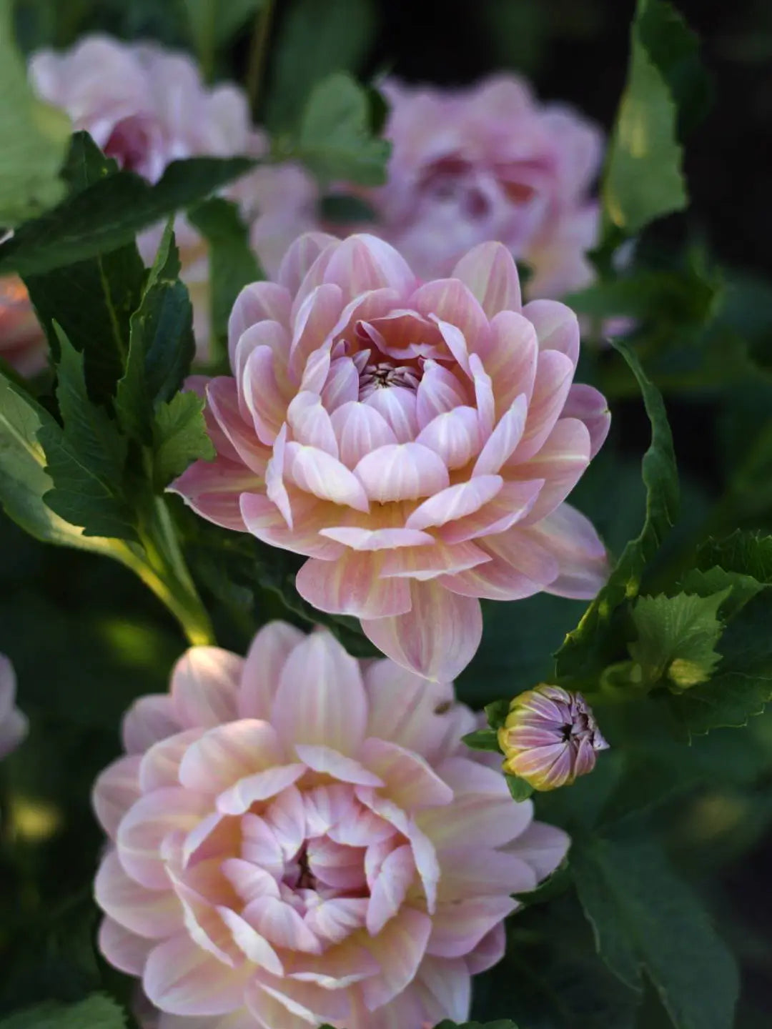 Dahlia ’Hapet Old Charm’ har en vackert skiftande färgskala i milda rosa och aprikosnyanser. Den näckrosformade blomman är helt bedårande och blir en klar juvel i rabatten eller krukan. Blommar rikligt och passar till snitt. En tidlös och harmonisk sort som ger trädgården en lugn och romantisk känsla.