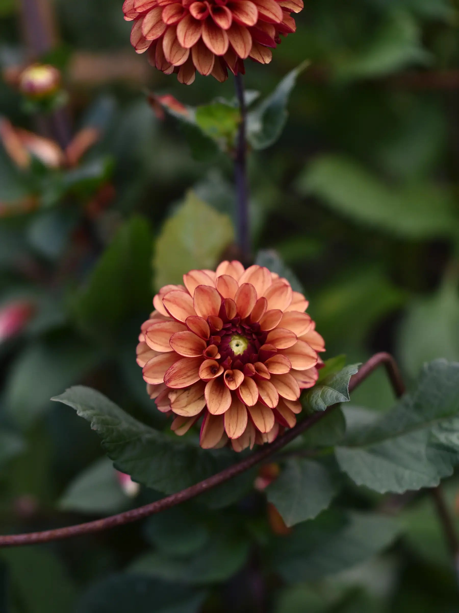 Dahlia ’High Fidelity’ är en utsökt bolldahlia med en sober och elegant färgskala i aprikos och teracotta. Dovt gula och röda skiftningar ger den en livlig, nästan flammande effekt och baksidan är vackert hallonröd. Varje blomma är unik, vilket gör sorten extra dekorativ i blandade planteringar. ’High Fidelity’ skapar energi och dynamik i rabatten – perfekt om du vill ha en färgklick som verkligen syns.