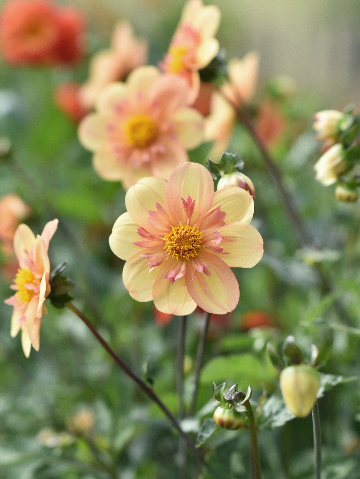 Dahlians slående skönhet går inte omärkt förbi någon. Blommans variationsrikedom tycks vara oändlig , både när det gäller färg och form. Varje dahliablomma, oavsett utseende, bidrar med skönhet och intressanta blickfång i trädgården. I vårt sortiment finns blommor i allt från snövitt till romantiskt rosa och riktigt dramatiskt rött. Om du vill använda dahliorna i olika arrangemang så rekommenderar vi dig att satsa på ett par till tre olika sorter som skiljer sig i form och storlek men som harmonierar i färg.