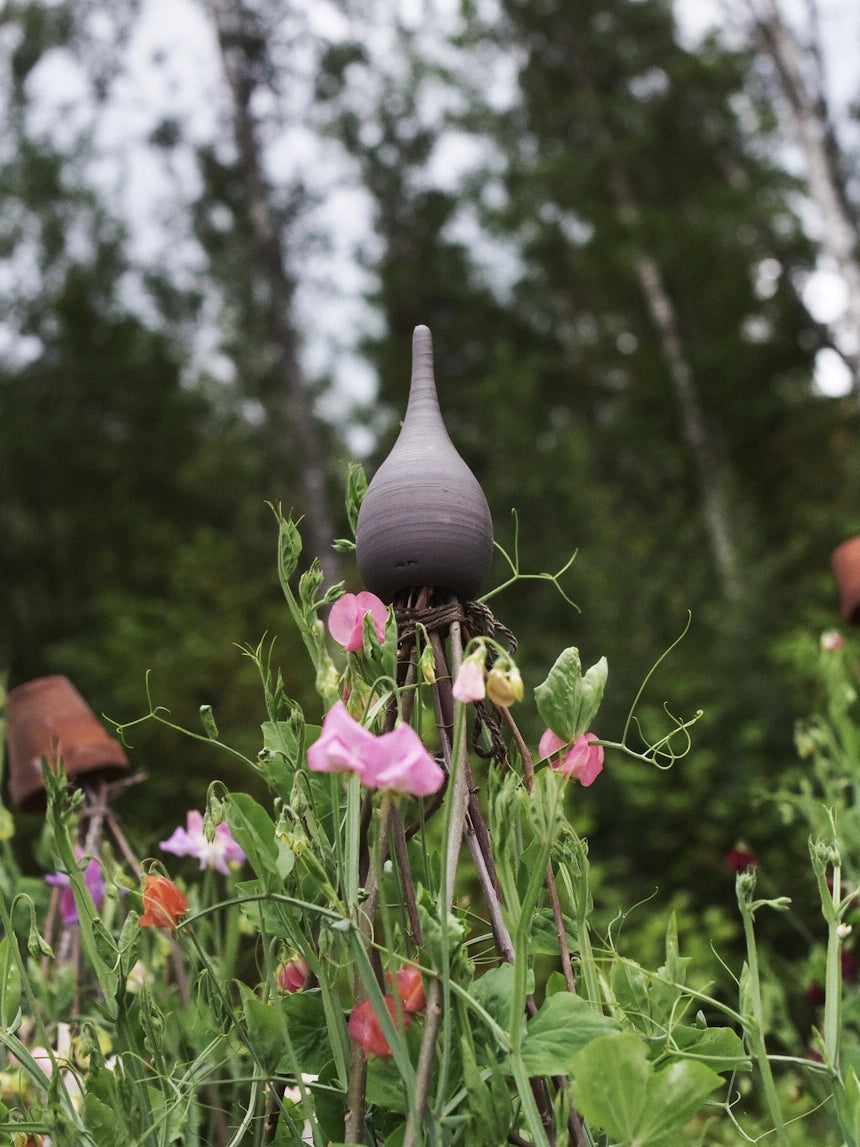 Varje topp är försedd med ett hål i botten för fäste av bambupinnar eller grenar av valfri längd. (Luktärter når ofta en höjd på minst 1.80).