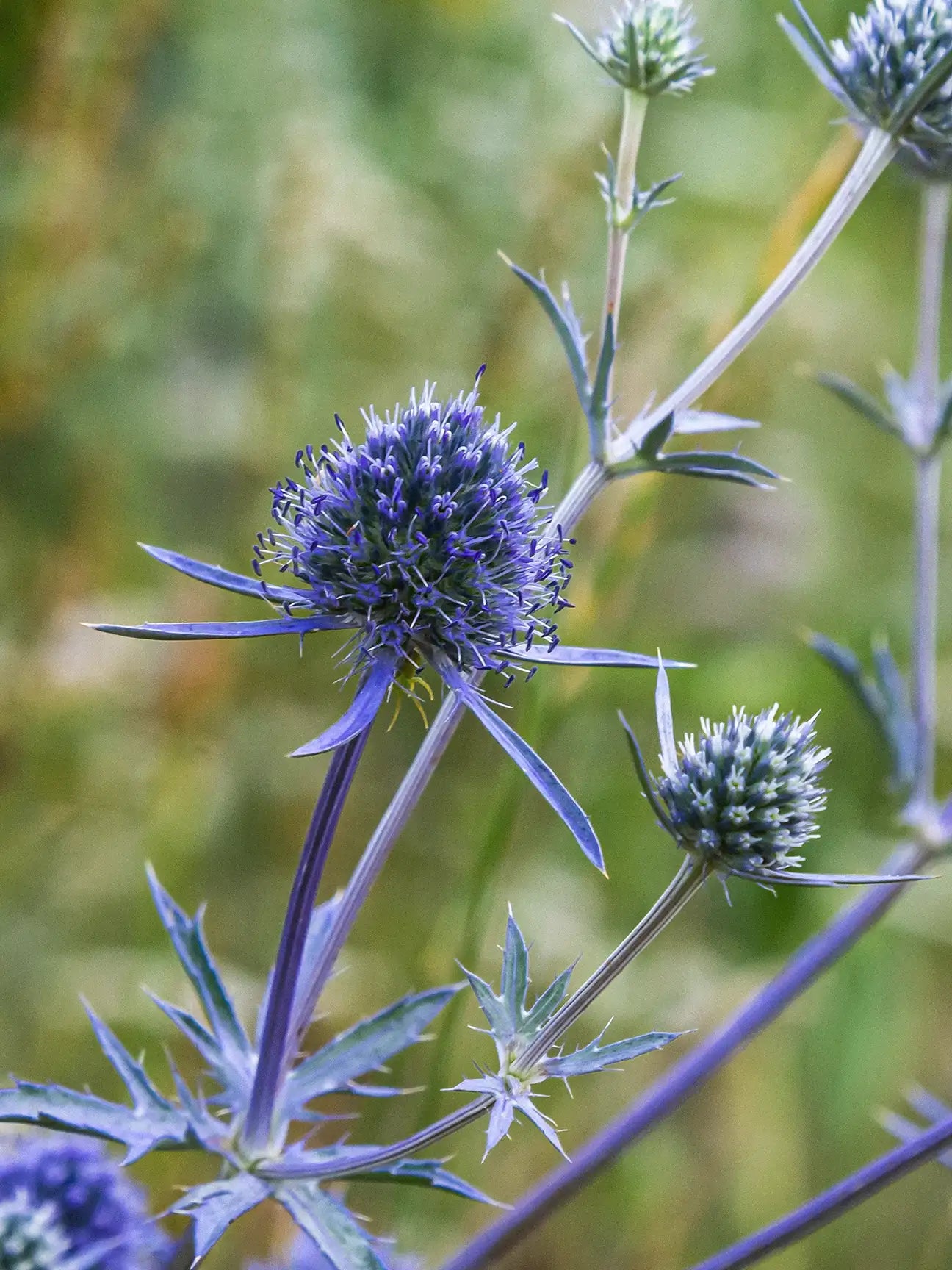 Rysk Martorn 'Blue Glitter' är en grov, klumpbildande perenn som har en sommarblomning av stålblå, tistelliknande blomhuvuden på grenade stjälkar. Odlas bäst i torr, sandig, väldränerad jord i full sol.
