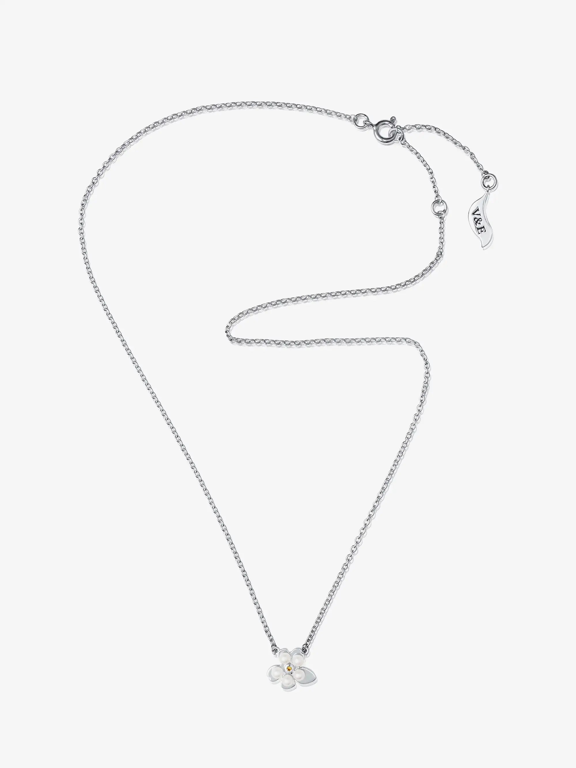 Halsband i återvunnet sterlingsilver eller 18K guldpläterat silver. Vackert hänge format som en förgätmigej dekorerad med sötvattenpärlor och en rundslipad citrin.