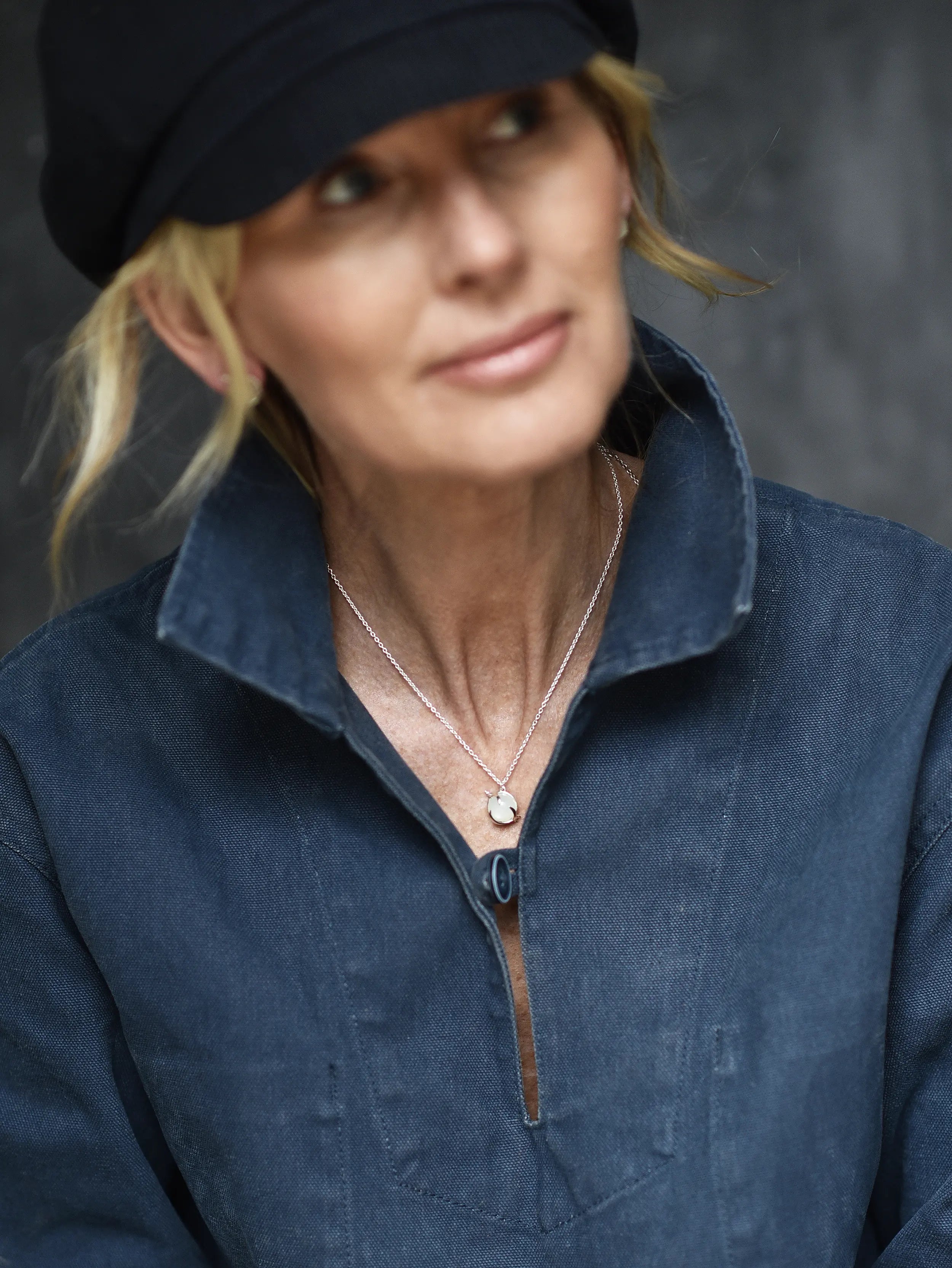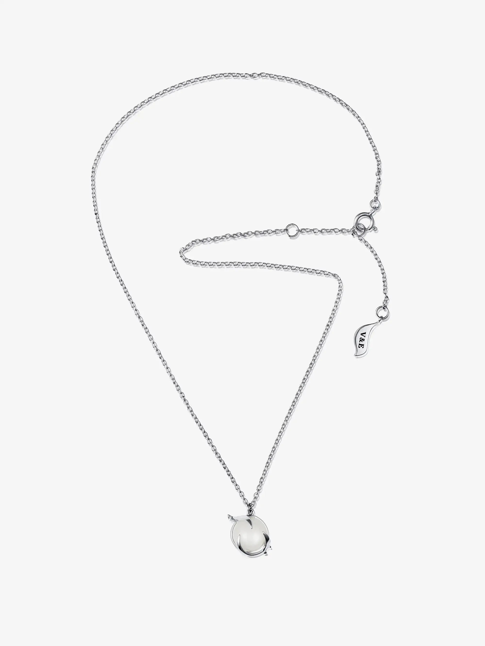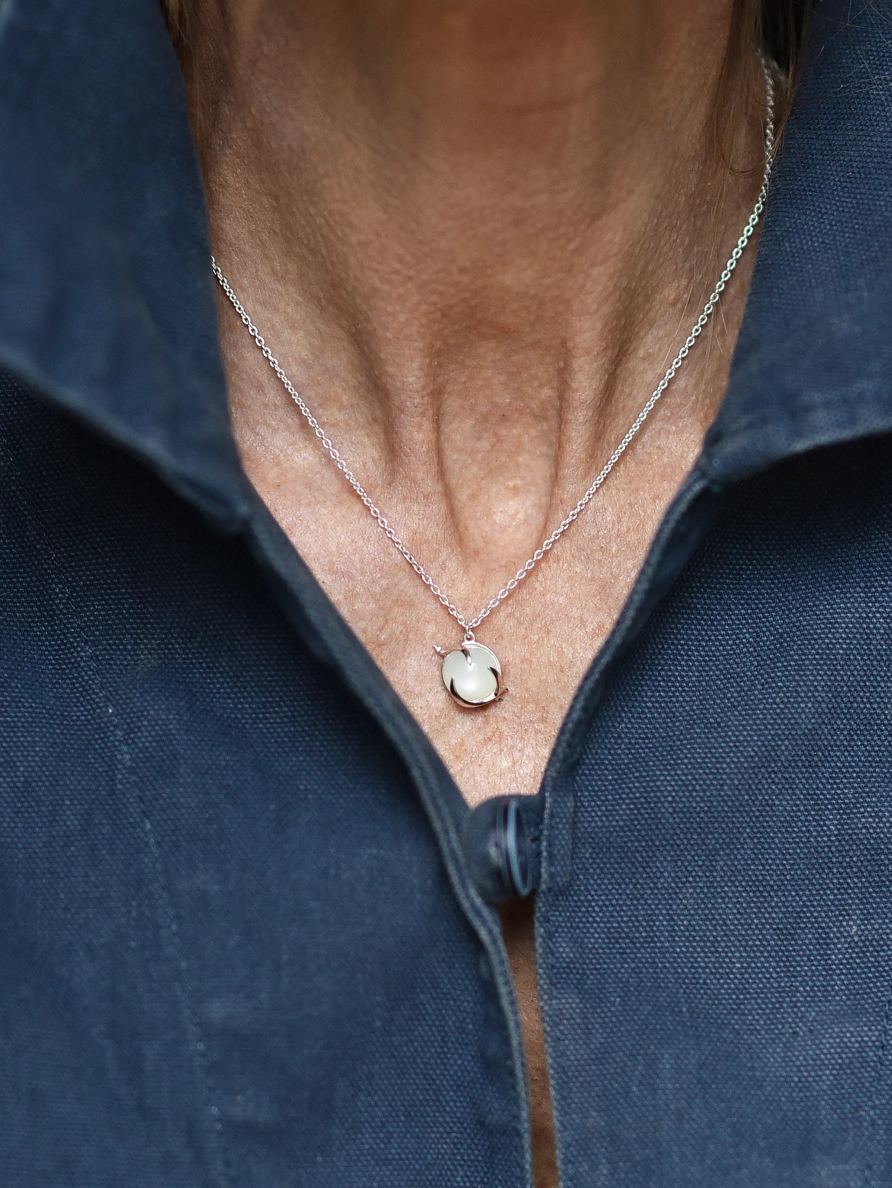 Halsband i återvunnet sterlingsilver eller 18K guldpläterat silver med en cabochonslipad månsten.