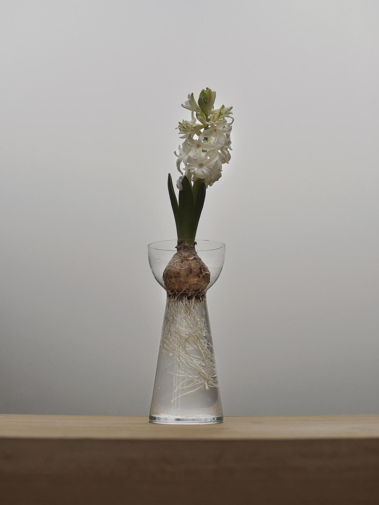Hyacintvas ’Dvala’ har en enkel klassisk form perfekt för att driva fram hyacinter. Den har en kupa som omfamnar löken och en större nederdel till rötterna. Gjord i kristallklart glas. Den har en tidlös design och glasvasen passar fint för en hyacint, stickling eller snittblommor.