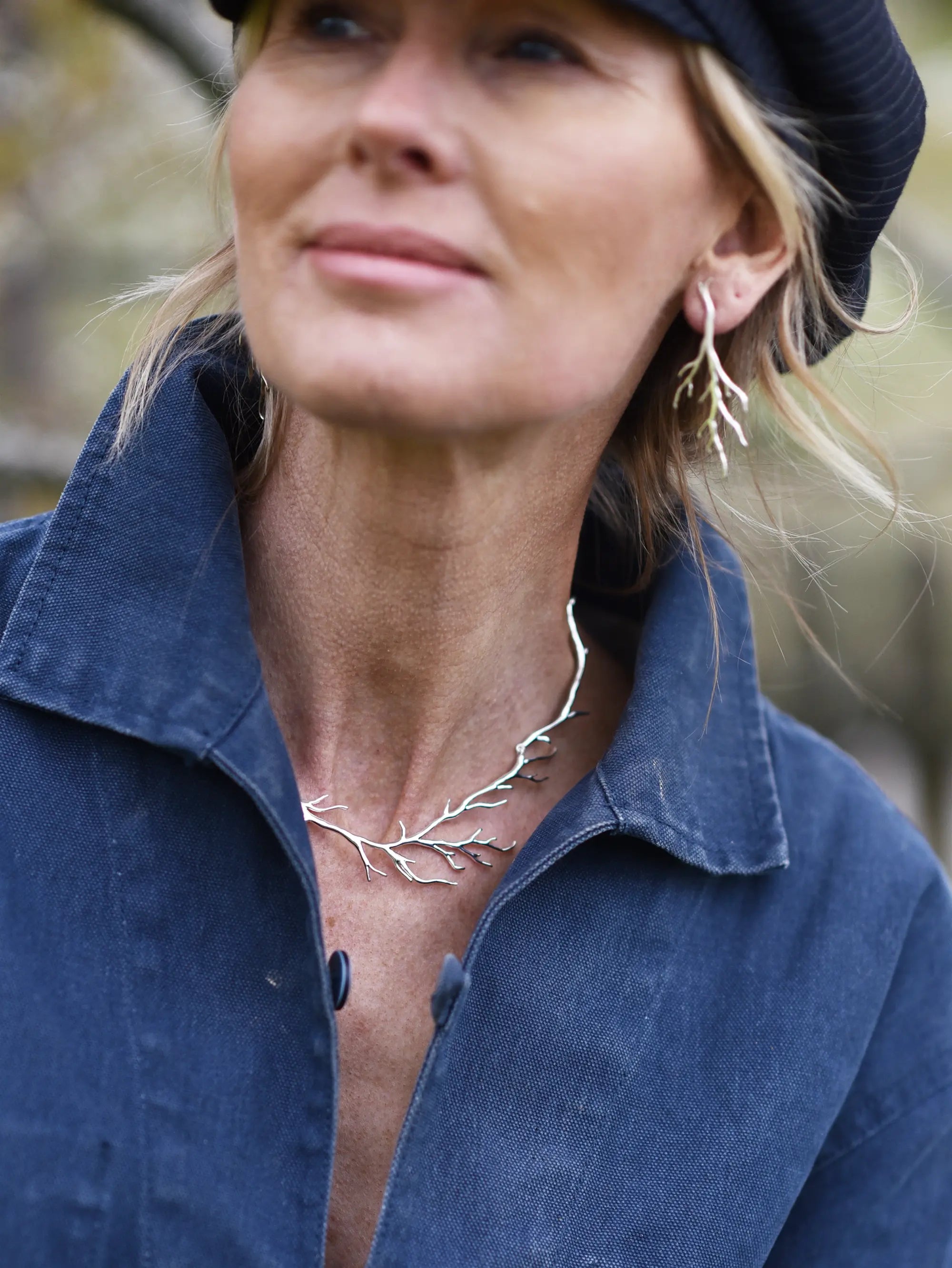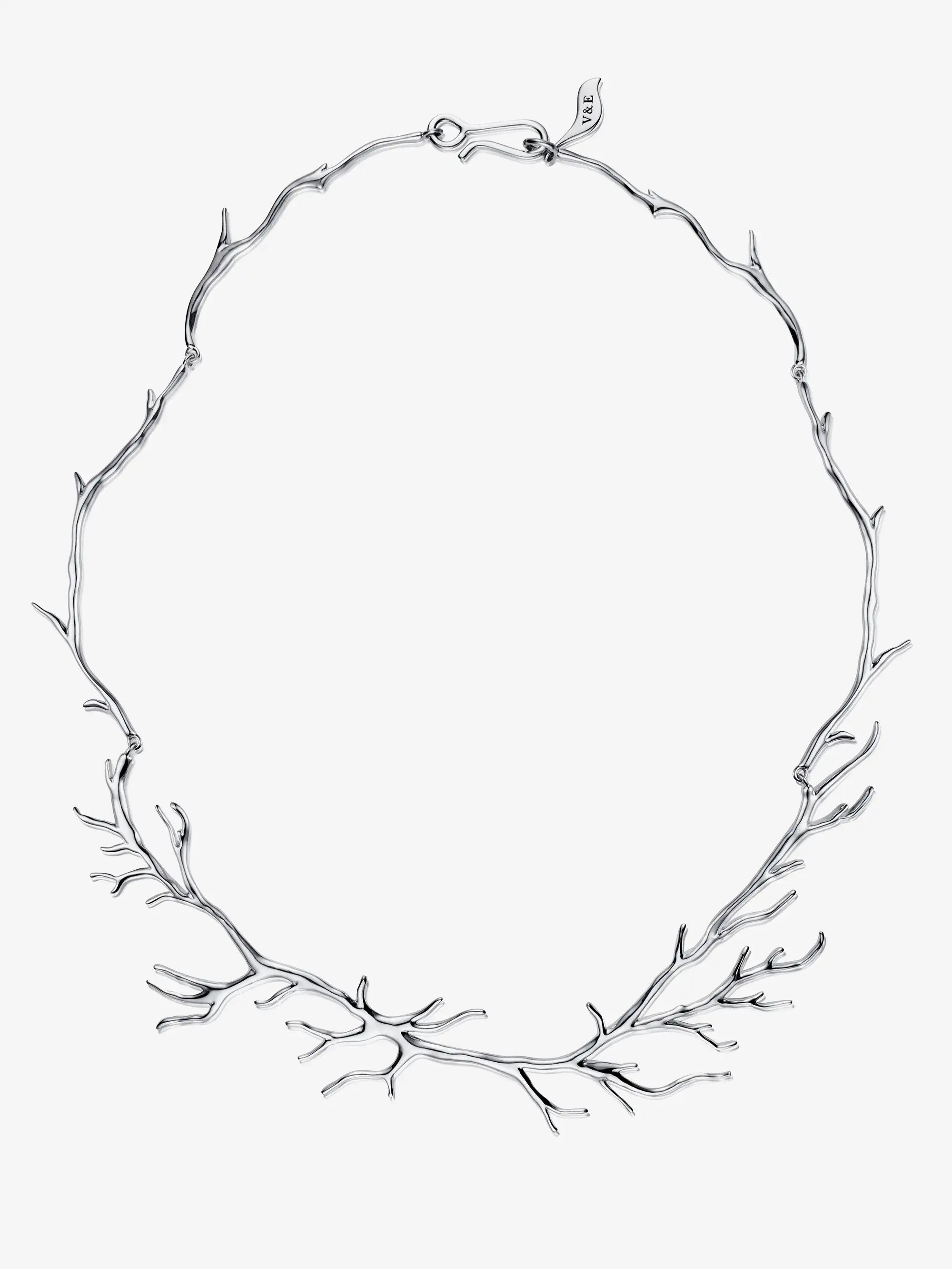 Collier i återvunnet sterlingsilver med slingrande rötter.