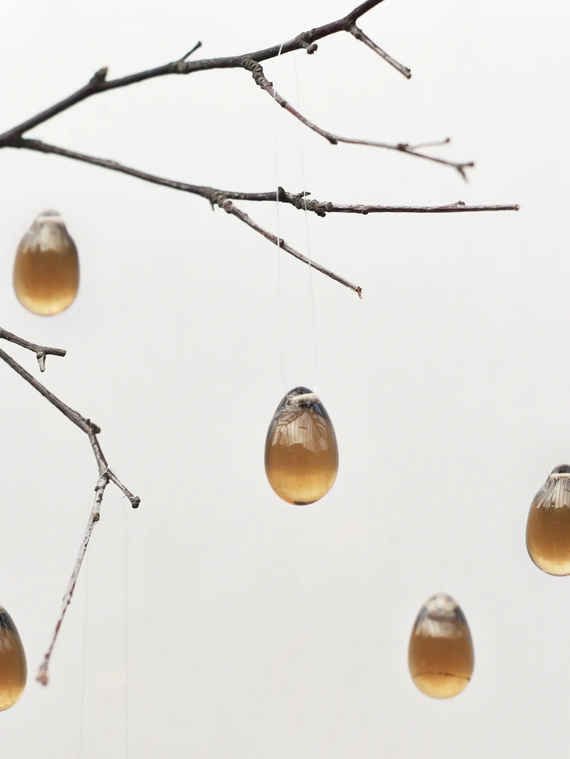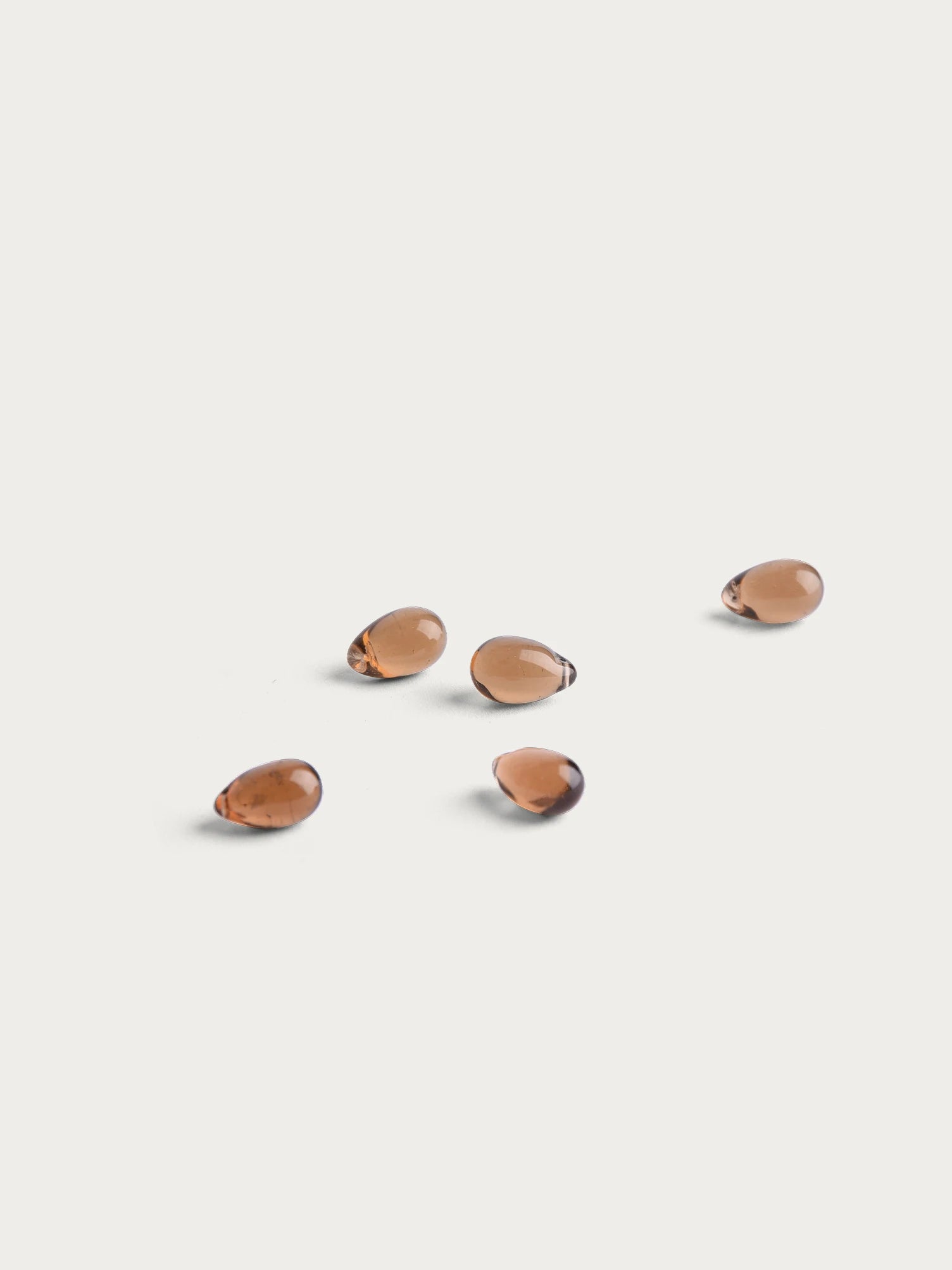Glasdroppe 'Smoked Topaz' i massivt mörkbrunt färgat glas med hål för enkel upphängning. Tillverkade både för hand och maskin i transparent glas. Varje droppe är helt unik, därav kan utseendet variera något.