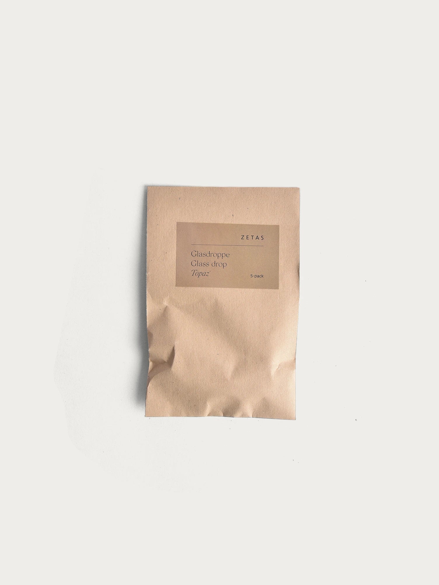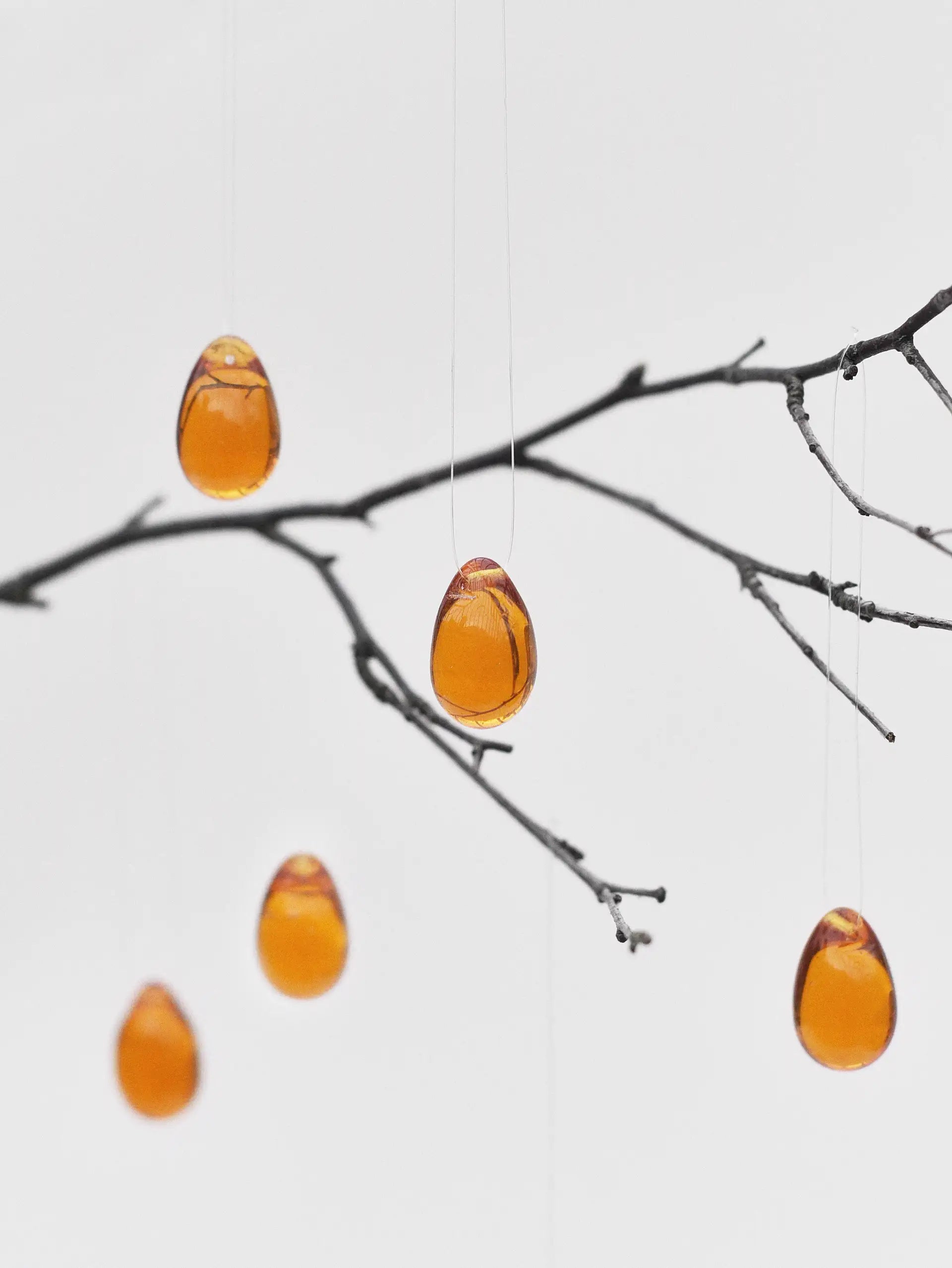 Glasdroppe 'Topaz' i massivt bärnsten färgat glas med hål för enkel upphängning. Tillverkade både för hand och maskin i transparent glas. Varje droppe är helt unik, därav kan utseendet variera något.