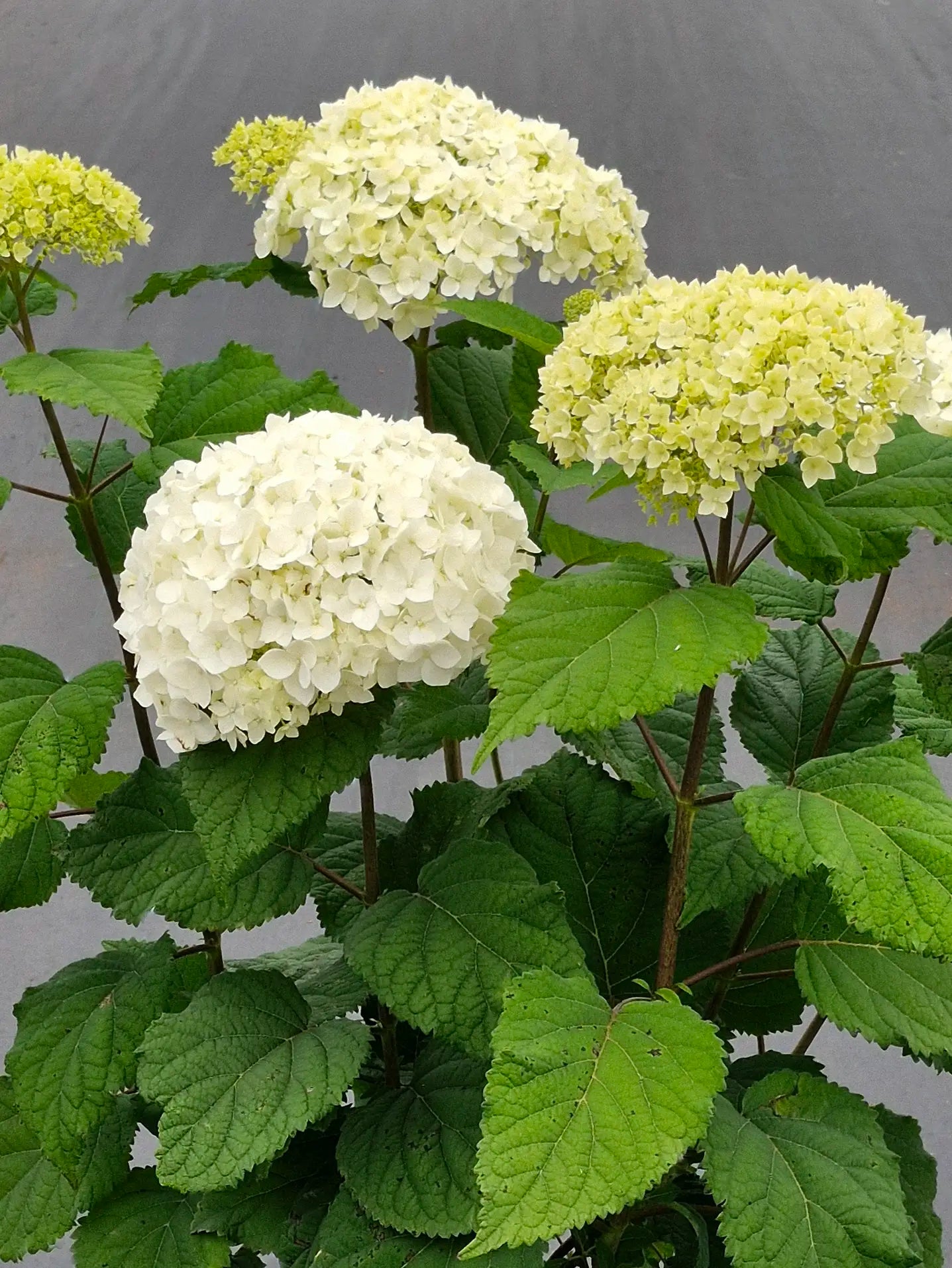 Vidjehortensia 'FlowerWow' är en vackert upprättväxande buske med kraftiga men ändå eleganta grenar och friskt gröna, sammetslena blad. Mycket lik den klassiska sorten ’Annabelle’, men med betydligt stadigare stjälkar och ett mer upprätt växtsätt som gör att de tunga blomkloten står vackert även efter regn.