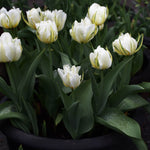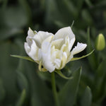 Tulpan ’Exotic Emperor’ är en fylld snövit tulpan med guld- och grönskimrande band på kronbladens utsida. Den blir 35-40 cm hög och blommar tidigt på tjocka stjälkar. Tillhör Fosteriana-Gruppen.