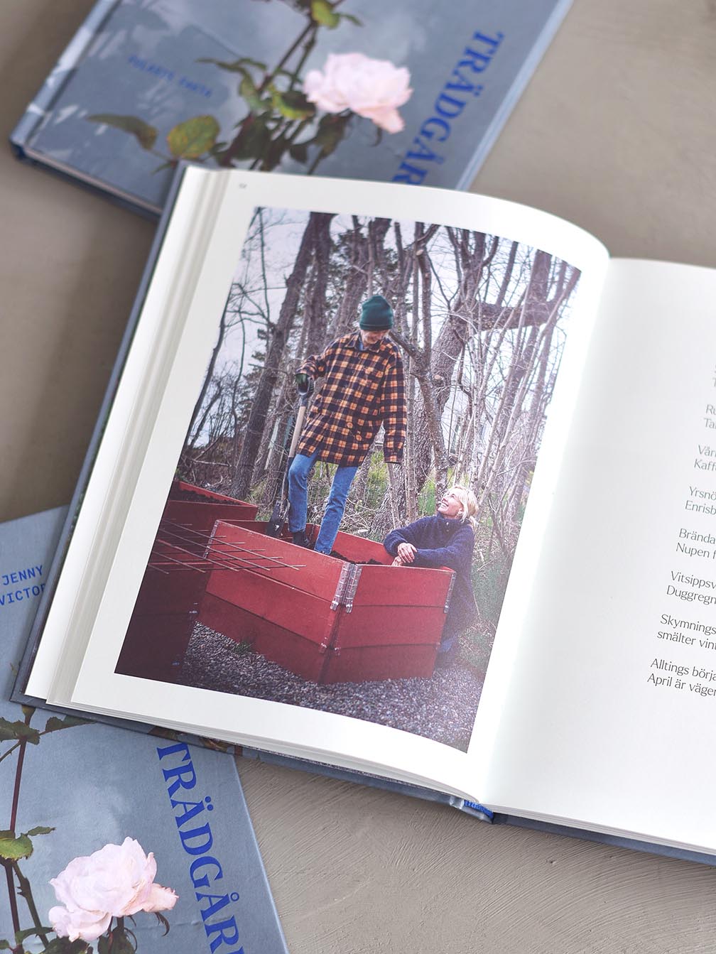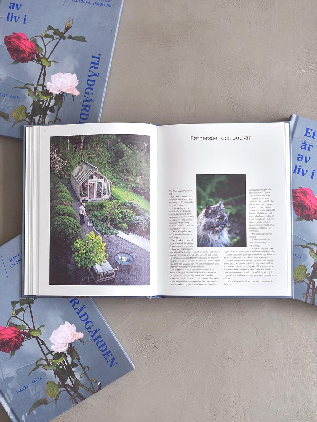 Därtill rymmer boken ett trettiotal växtporträtt som låter läsaren bekanta sig med omistliga växter i trädgården och hur man bäst lyckas med dem. Sist men inte minst hittar du författarnas bästa recept på allt ifrån Victorias värmande rotsellerisoppa till Jennys parad-äppelkaka med mandel- och dinkelmjöl.