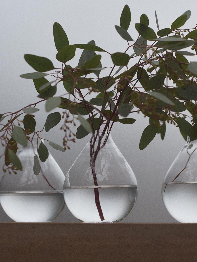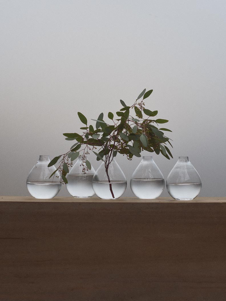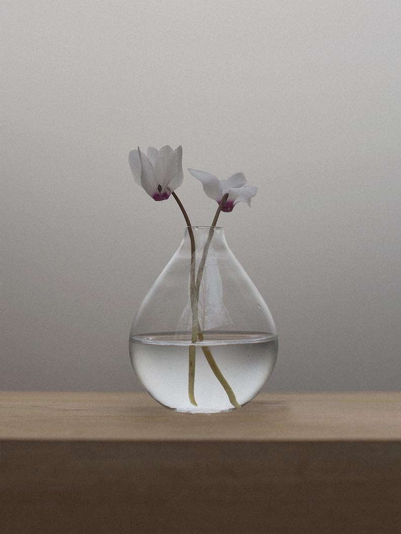 Glasvas ’Droppe’ är en droppformad vas med en smal öppning som gör att vasen passar utmärkt för att framhäva mindre blommor, kvistar eller sticklingar. Gjord i kristallklart glas.