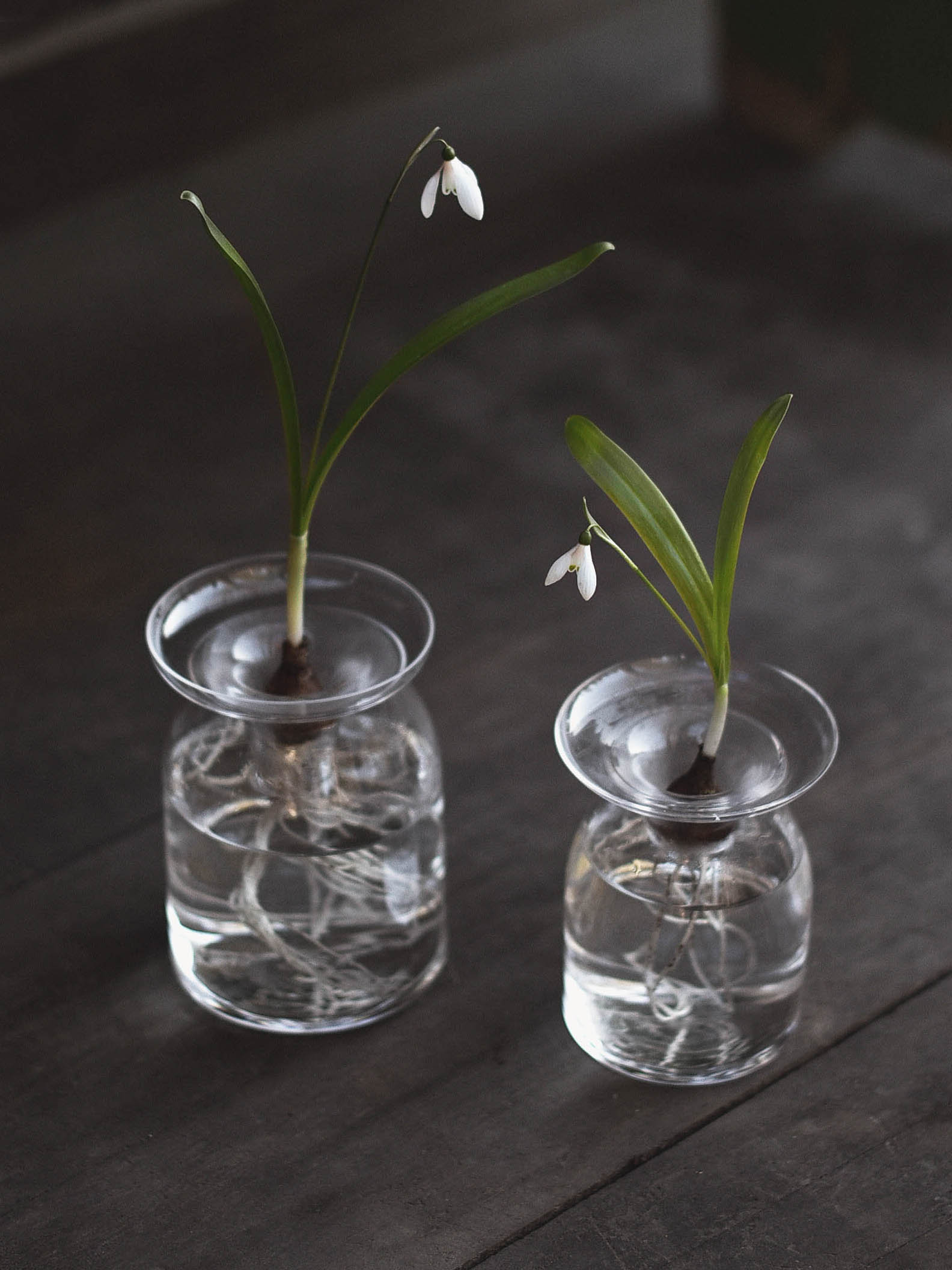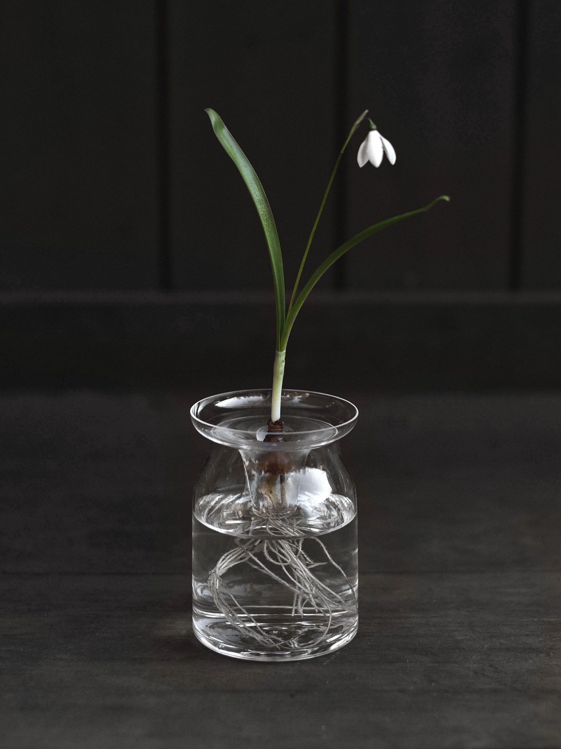 Glasvas ’Nivalis’ är en två-delad vas med en rund behållare som gör att vasen passar utmärkt för driva fram snödroppar, ekollon eller sticklingar. Gjord i kristallklart glas.