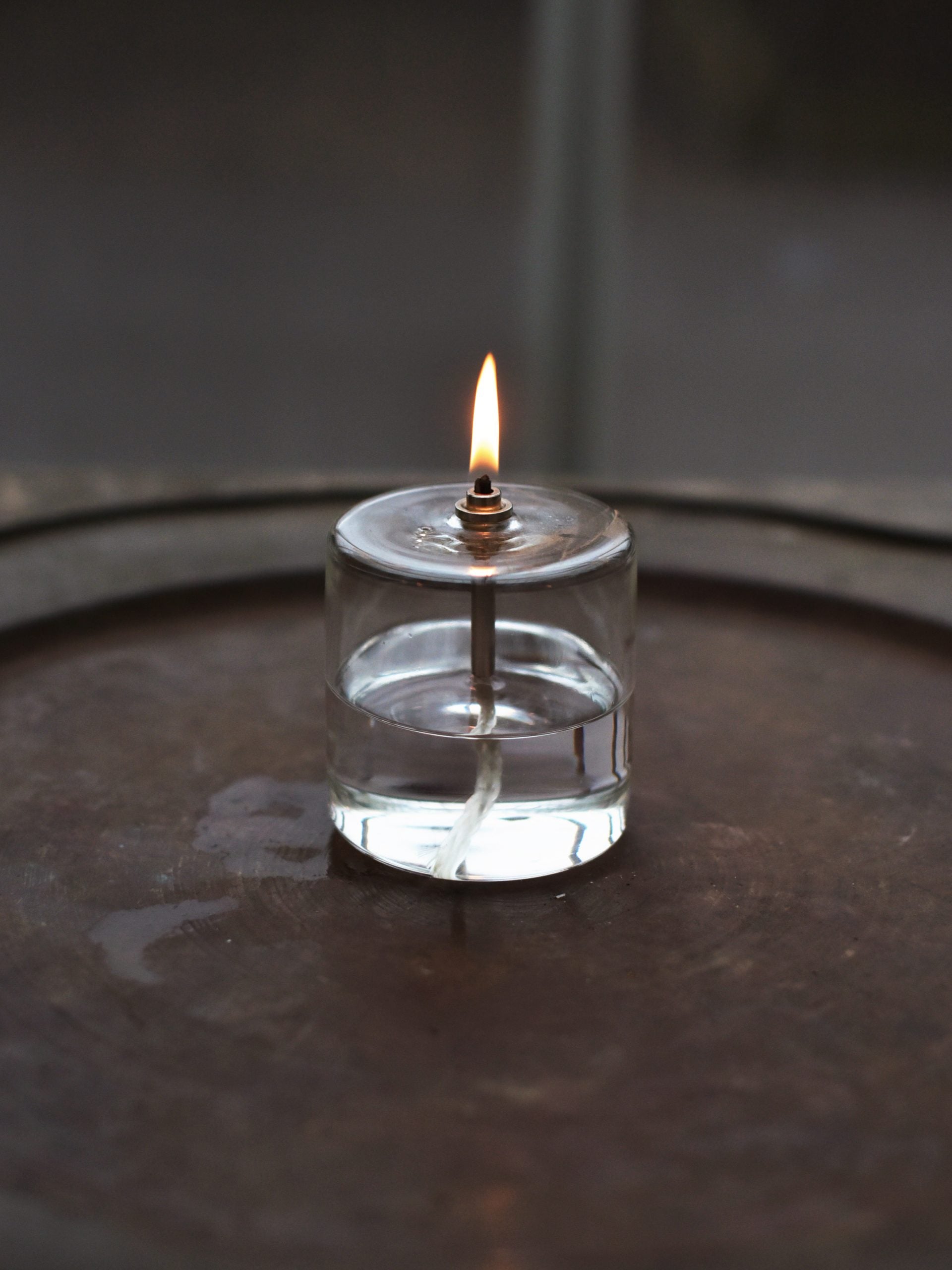 Säljs utan olja. Fyll lampolja upp till 3/4 i glaset. Fyll oljelampan med hjälp av pip till petflaska.