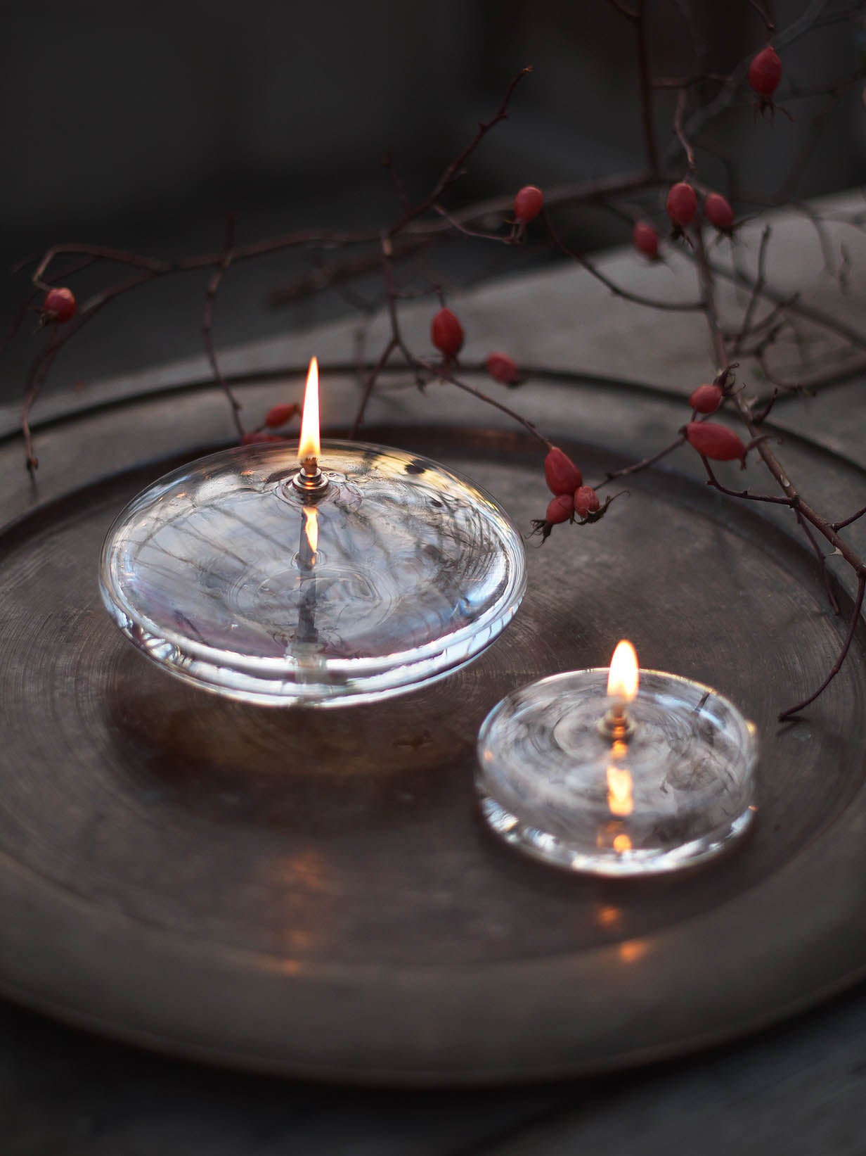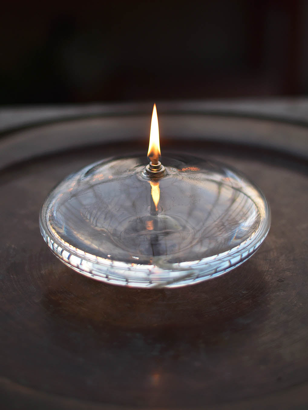 Säljs utan olja. Fyll lampolja upp till 3/4 i glaset. Fyll oljelampan med hjälp av pip till petflaska.