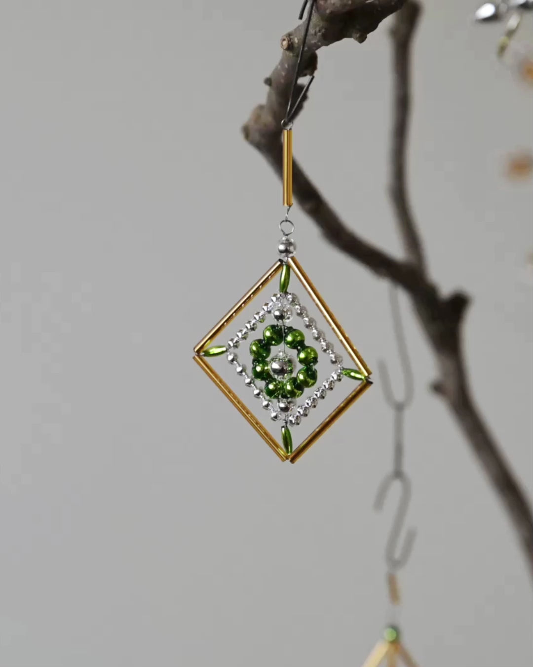 Varje prydnad är handgjord i Poniklá, Tjeckien, med en unik metod där små glaspärlor blåses, försilvras, färgas och skärs innan de träs samman för hand. Resultatet är en skimrande dekoration av sällsynt hantverksskicklighet, en tradition som idag är erkänd av UNESCO som ett kulturarv.