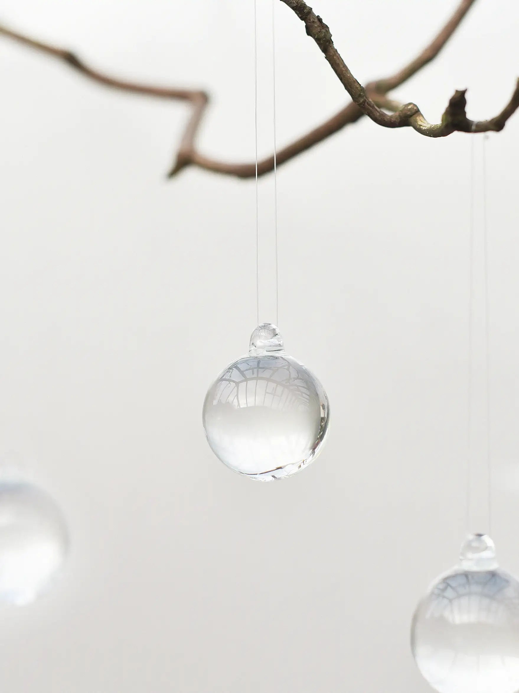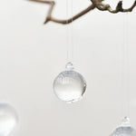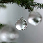 Glaskulor 'Transparent' i massivt klart, handgjort glas med upphängningshål. En enkel och stilren dekoration för alla säsonger. Passar lika bra i julgranen och fönster som över ett dukat bord. Ljuset speglas vackert i det genomskinliga glaset.