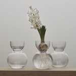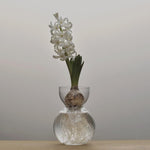 Hyacintvas ’Veder’ har en enkel rund form som passar perfekt för att driva fram hyacinter. Den har en kupa som omfamnar löken och en större nederdel till rötterna. Gjord i kristallklart glas. Den har en tidlös design och glasvasen passar fint för en hyacint, stickling eller snittblommor.