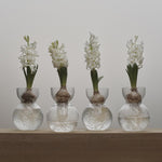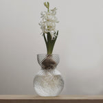 Hyacintvas ’Veder’ ribbed har en enkel rund form i räfflat optiskt mönser som passar perfekt för att driva fram hyacinter. Den har en kupa som omfamnar löken och en större nederdel till rötterna. Gjord i kristallklart glas. Den har en tidlös design och glasvasen passar fint för en hyacint, stickling eller snittblommor.
