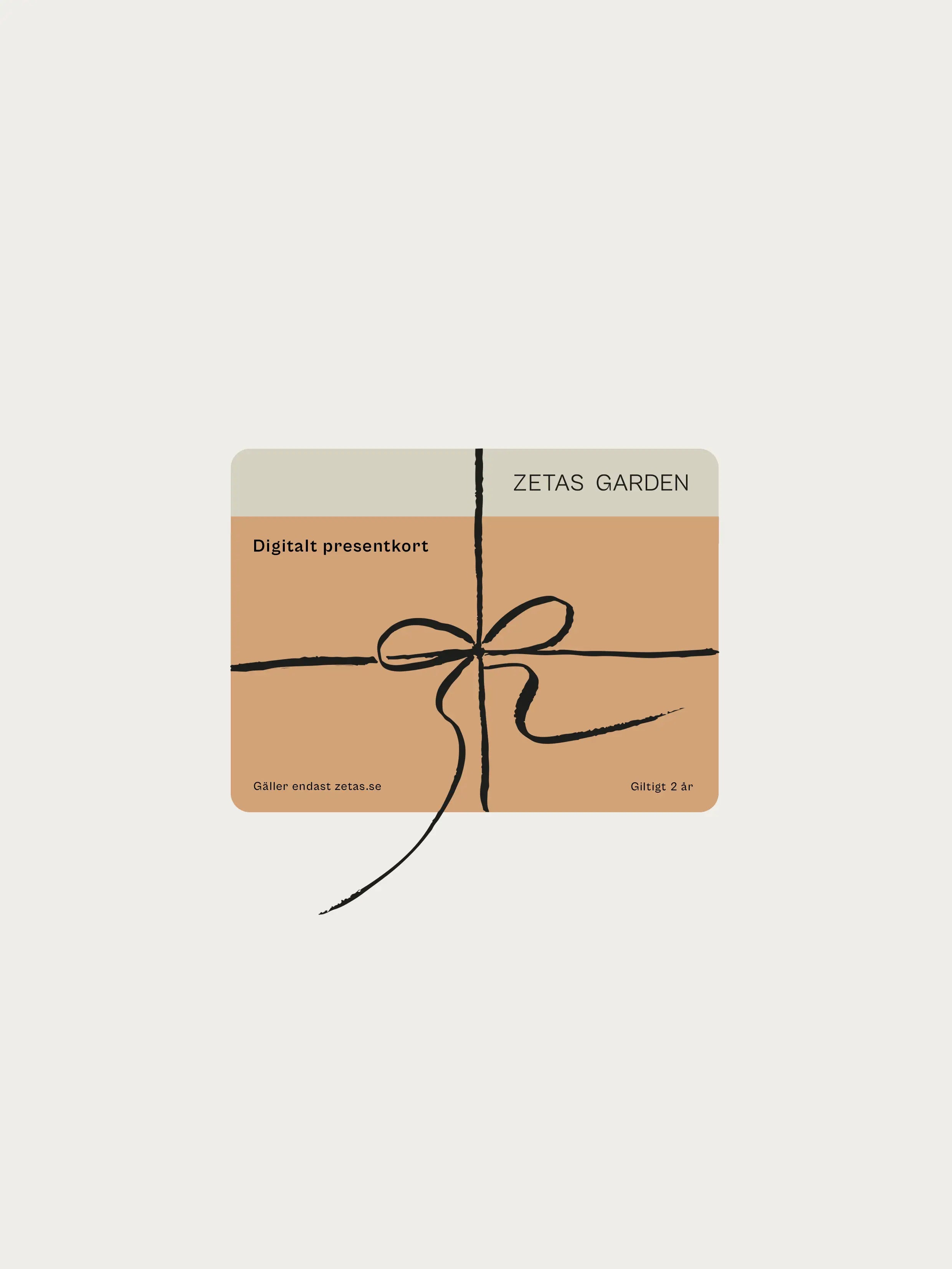 En uppskattad present till alla trädgårdsentusiaster. Behöver du en present snabbt och smidigt rekommenderar vi Zetas digitala presentkort. Presentkortet består av en kod som du får via mail efter beställning.