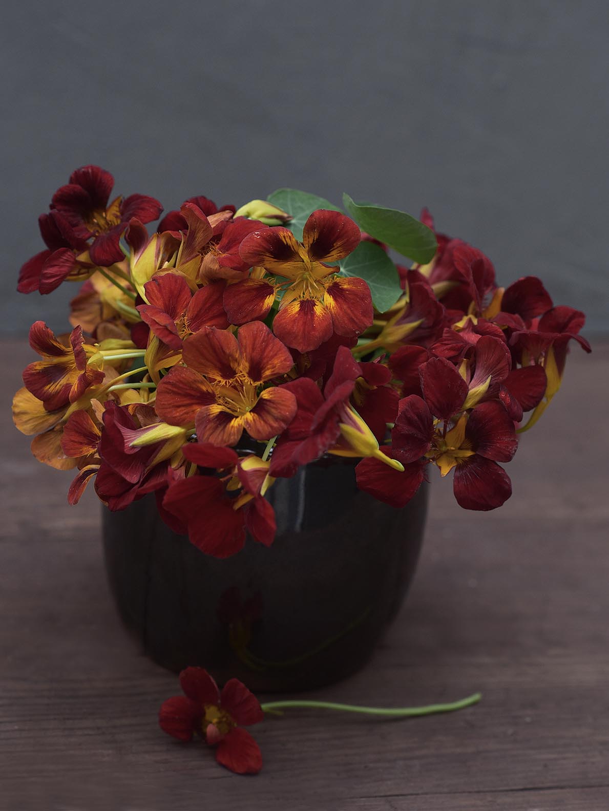 Dvärgkrasse ’Black Velvet’ är en mindre krasse med djupt mörkröda blommor och kronbladen är nästan som sammet. Perfekt för krukor, hängkorgar och kanter i köksträdgården. Blommorna har en pepprig smak som passar perfekt i sallader. Lätt att odla. Älskas av fjärilar och bin!