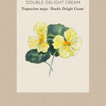 Dvärgkrasse 'Double Delight Cream' får blekgula halvdubbla och dubbla blommor vilket gör denna kompakta sort till en riktig njutning. Perfekt för köksträdgården, krukor och rabatter. Blommor och blad är ätbara med en pepprig smak. Lätt att odla. Attraherar blommor och bin.