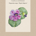 Krasse 'Purple Emperor' är en slingrande krasse med blommor i sällsynta nyanser av lila som bleknar till puderrosa. Utmärkt att växa mot en spaljé eller staket samt i rabatter, pallkrage och stora krukor. Blommor och blad har en pepprig smak. Lätt att odla. Omtyckt av bin, fjärilar och humlor!