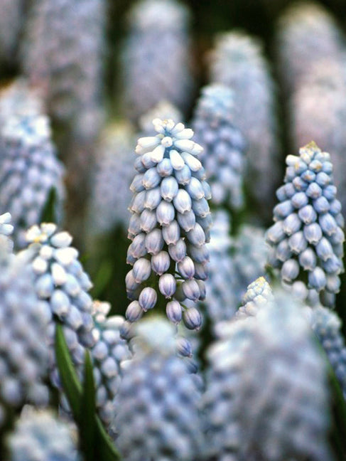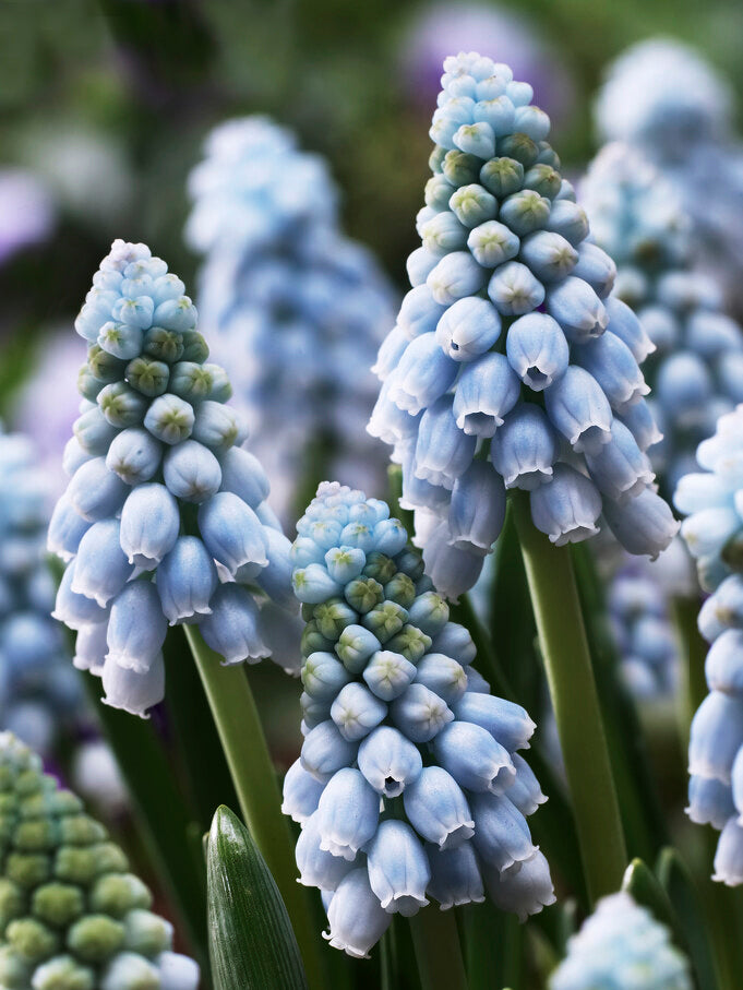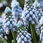 Armenisk pärlhyacint 'Valerie Finnis', Muscari armeniacum 'Valerie Finnis' får ljusblå pärlblommor längs stängeln med fin doft. Bra biväxt och snittblomma.