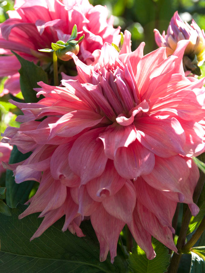 Utplantera efter nattfrost, minst 30-40 liters krukor med 50 cm avstånd. Täck med fiberduk under kalla nätter. Vattna regelbundet och gödsla ett par gånger med Zetas dahliagödsel. Plocka buketter, putsa bort vissna blommor och stöd höga sorter. Övervintras frostfritt och mörkt.