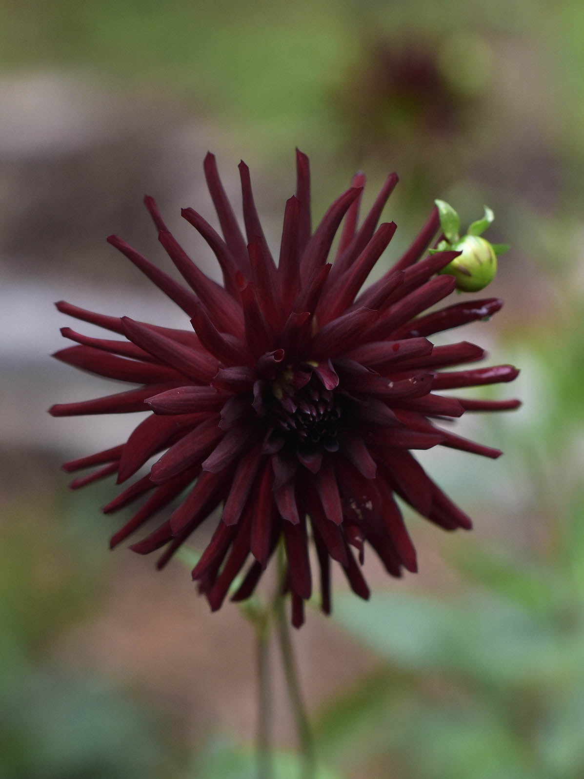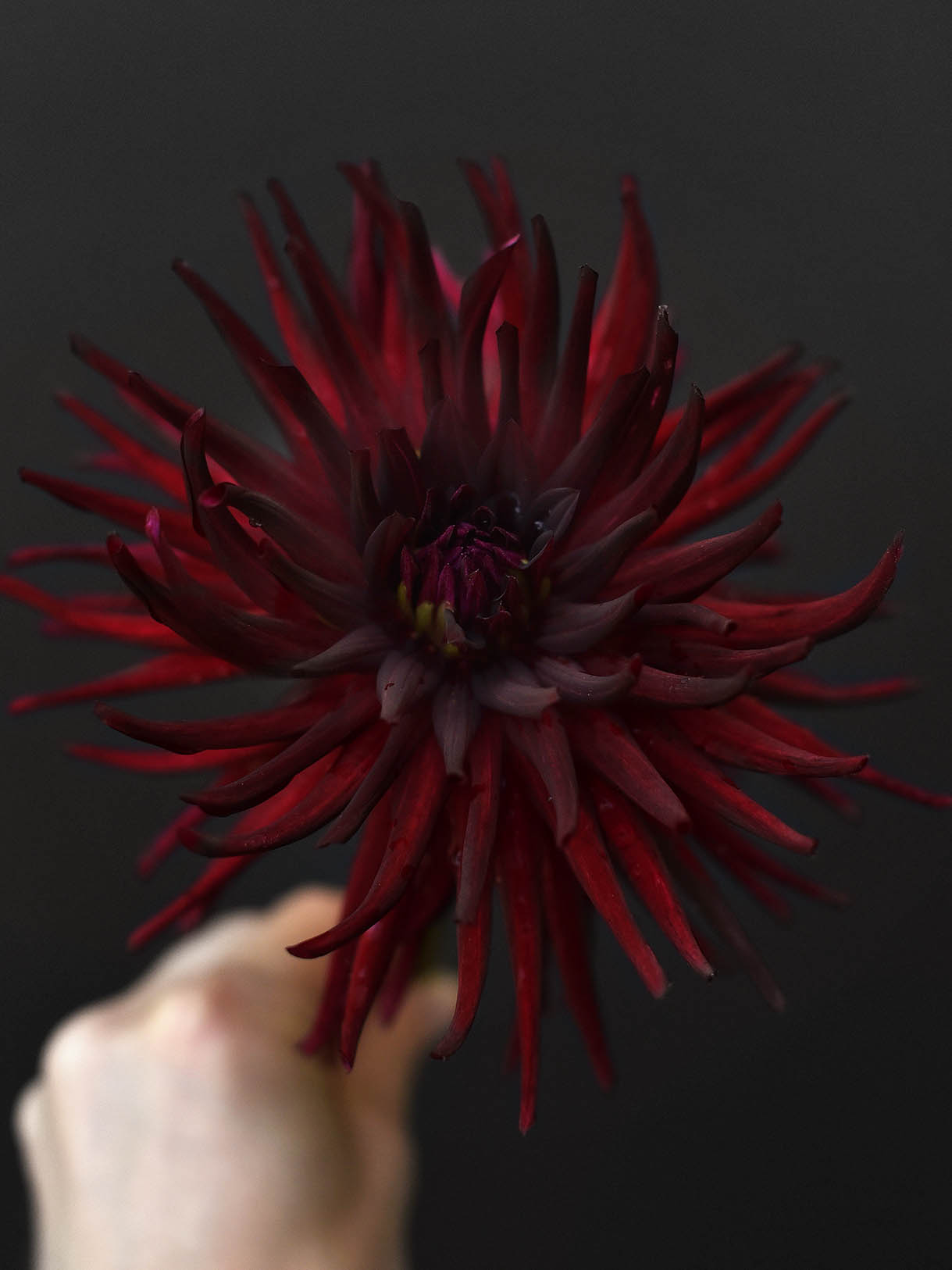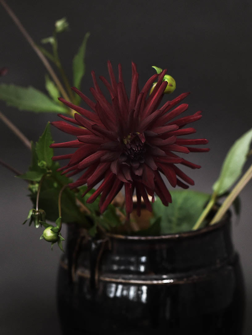 Dahlia ´Nuit d´Ete’ tillhör gruppen kaktusdahlior med ursprung från Mexiko och Centralamerika. Utmärkande för blommorna är de långsmala, lite krulliga och samtidigt sammetslena kronbladen som ger blomman ett rufsigt nästan yrvaket utseende. De blir ganska stora, drygt 12 centimeter vilket gör blomman vacker som solitär i en vas eller som flytande dekoration i en skål. Den mörkröda färgen tillsammans med formen gör att den här dahlian bidrar med bohemisk dramatik till trädgården.