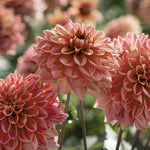 Utplantera efter nattfrost, minst 30-40 liters krukor med 50 cm avstånd. Täck med fiberduk under kalla nätter. Vattna regelbundet och gödsla ett par gånger med Zetas dahliagödsel. Plocka in buketter, putsa bort vissna blommor och stöd höga sorter. Övervintras frostfritt och mörkt.