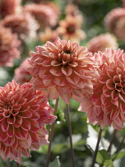 Dahlia ´Salmon Runner´ är en förtjusande sort i rosa toner med inslag av gult. Den inleder blomningssäsongen i rosa för att i takt med att sommaren långsamt blir höstlik, övergå i laxfärgade färgtoner. Blommorna är medelstora, cirka 10-15 centimeter. De sitter på stjälkar tjocka som blyertspennor. Busken blommar rikligt och har ett vackert bladverk. Det här är en färgstark dahlia som det är lätt att falla för.