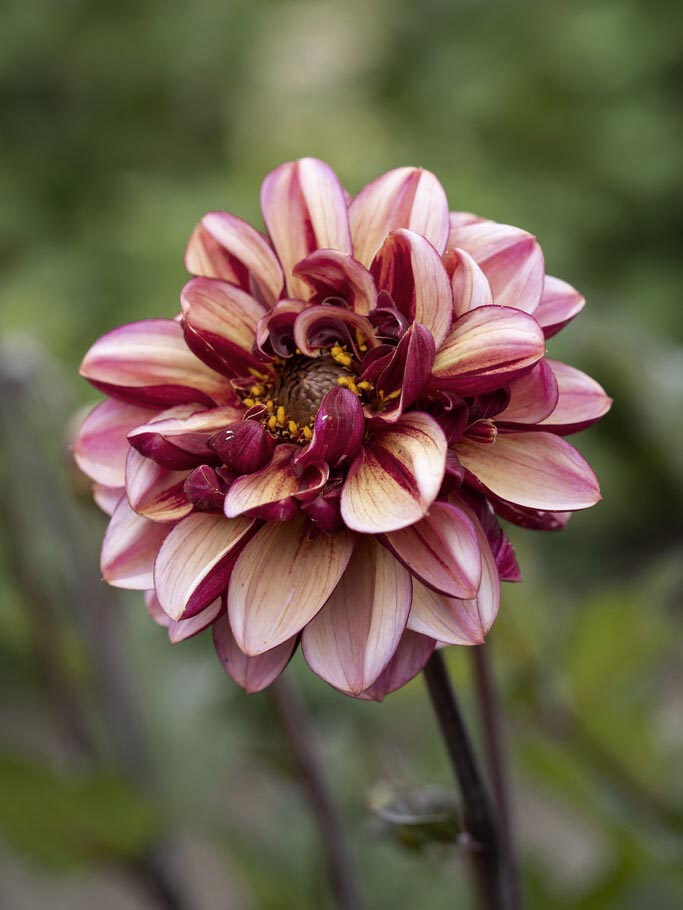 Dahlia ’Seniors Hope’ är en älskvärd dekorativdahlia där varje blomkorg är som ett konstverk med kronblad i utsökta pudrigt gammalrosa, vinröda, vaniljgula och benvita nyanser. Kronbladen är lätt vridna så att den mustigt vinröda baksidan anas. Bladverk och stjälkar är mörka. Blommorna är 10–15 cm stora och stjälkarna riktigt långa och fina, perfekta för vasen.