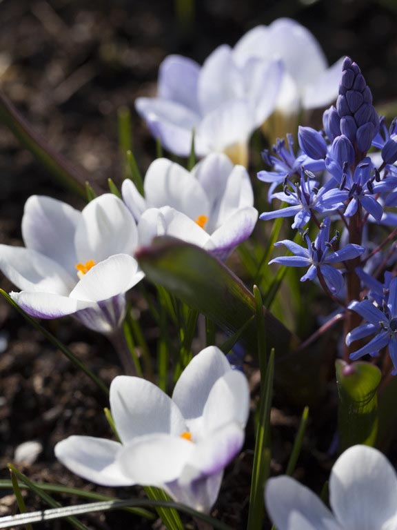 Hybridkrokus ’Blue Ice’ är en mix av blå och vita krokus. Blommorna ger ett välkommet mattillskott till nyvakna humlor och bin i mars-april. Plantera i grupper i gles gräsmatta, stenparti eller under buskar och träd.