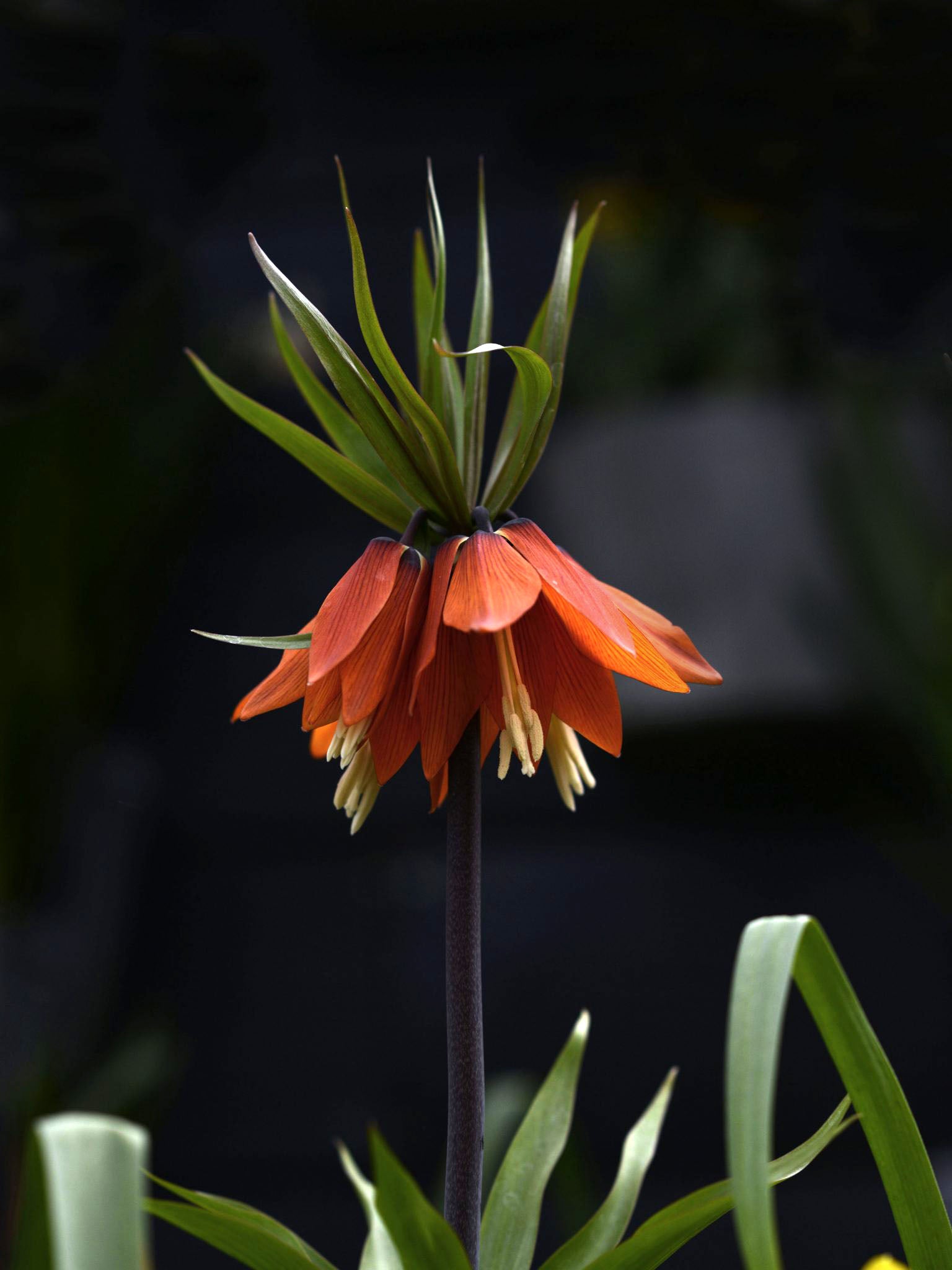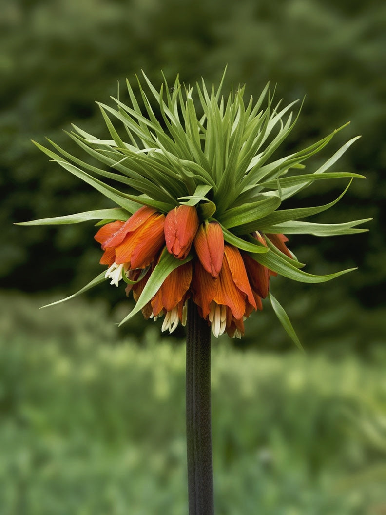 En strålande orangeröd kejsarkrona som blommar i maj. Blir cirka 80-100 cm hög. Trivs i väldränerad jord i ett soligt läge.