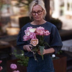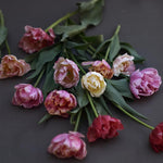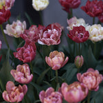 Tulpanmix ’Cherry Stream’ är en lekfull blandning där tulpanen ’Pink Star’ dominerar färgskalan med sina aprikosa och rosa färgskiftningar. Det är en tulpan som får stadiga stjälkar och blir nästan ännu vackrare som fullt utslagen då färgerna dansar i en mjuk fin rosaskimrande färgskala. Tulpanen ’Peptalk’ lyfter upp och gör buketten till något alldeles extra.