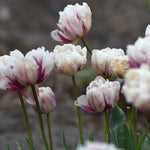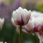 Tulpan ’Flaming Margarita’ är en krämvit fylld tulpan med purpurlila strimmor. Fyllda blommor gör att de blommar längre än de enkla tulpanerna. Mycket bra snittblomma.